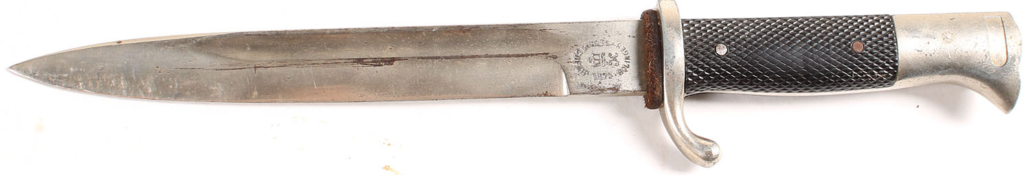 German, Carl Julius Krebs Solingen, M1898/05 Dress/parade Bayonet. Blade has spots of wear & patina. The left side of the blade is marked ''CARL HULIUS KREBS SOLINGEN'' all around a crown over ''K'' logo. Grade: Very Good ++ - Value: 60 to 120