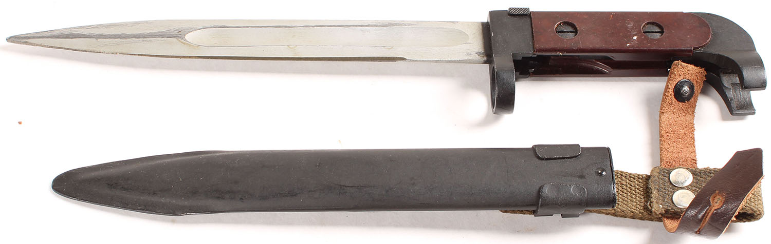 | Model 1951 (AK-47) bayonet with sheath/frog. Has no visible mark...