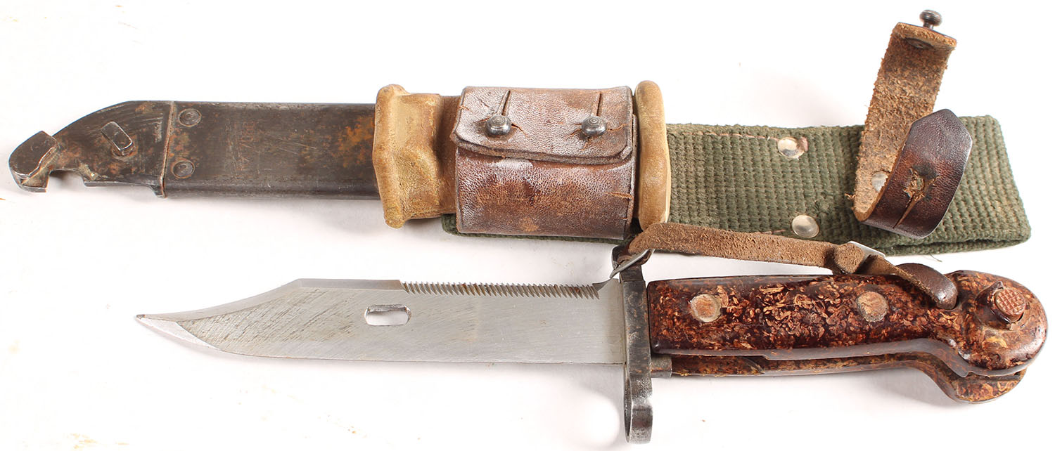 | AKM type 1 (M1959) bayonet, with sheath & frog. No markings on ...