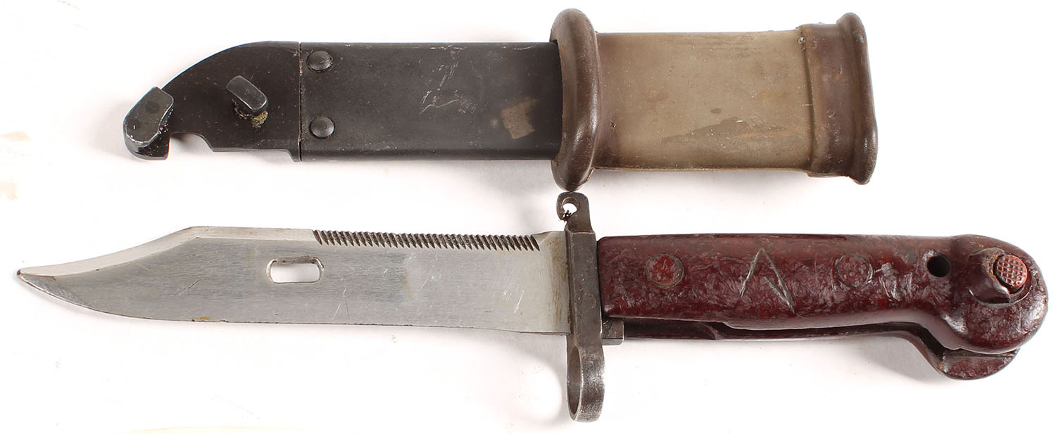 | AKM type 1 (M1959) bayonet, with sheath & insulator. Bayonet ha...