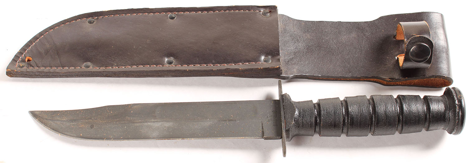 | USMC, MK2 knife with leather sheath, Ontario knife Co., left sid...