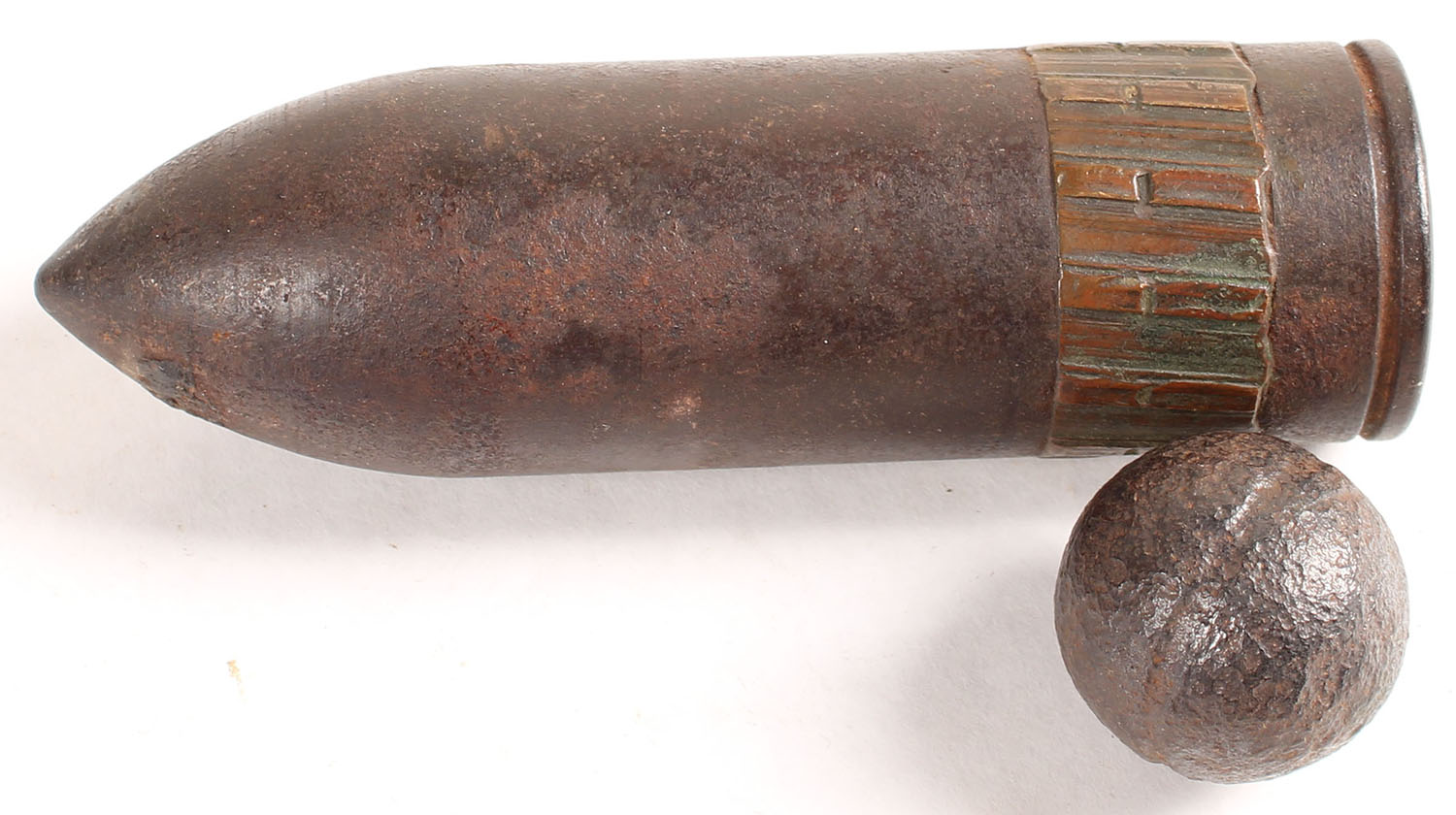 Lot of two Military projectiles, one small ball, & one 37mm projectile. Grade: Very Good ++ - Value: 10 to 50