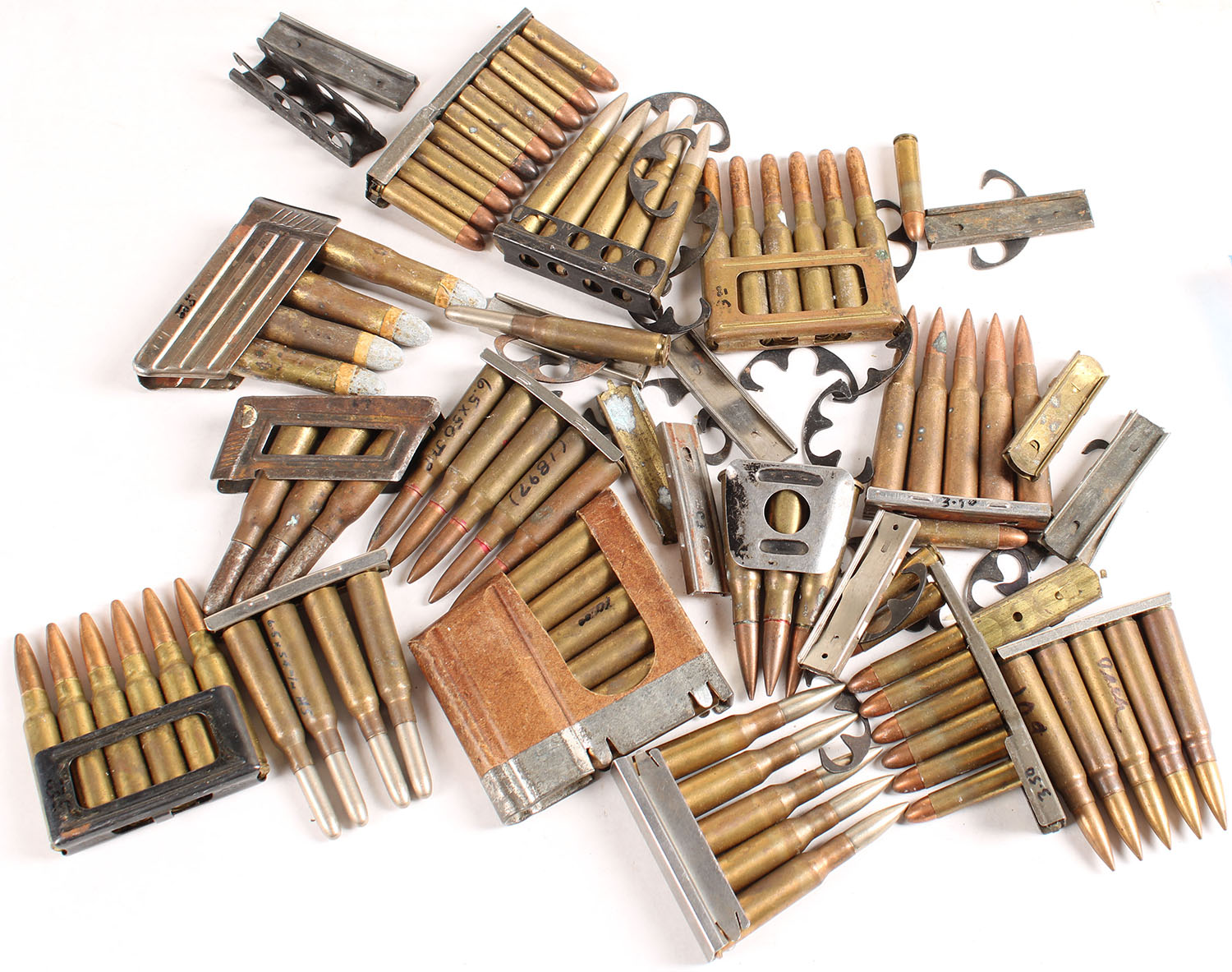 | Large lot of military calibers & clips, clips have rust. Grade:...