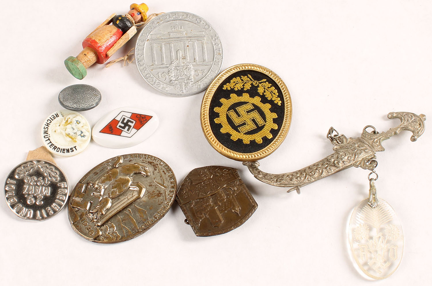 | Lot of 10 German/Nazi medals, pendants, Pinbacks. Grade: Excelle...
