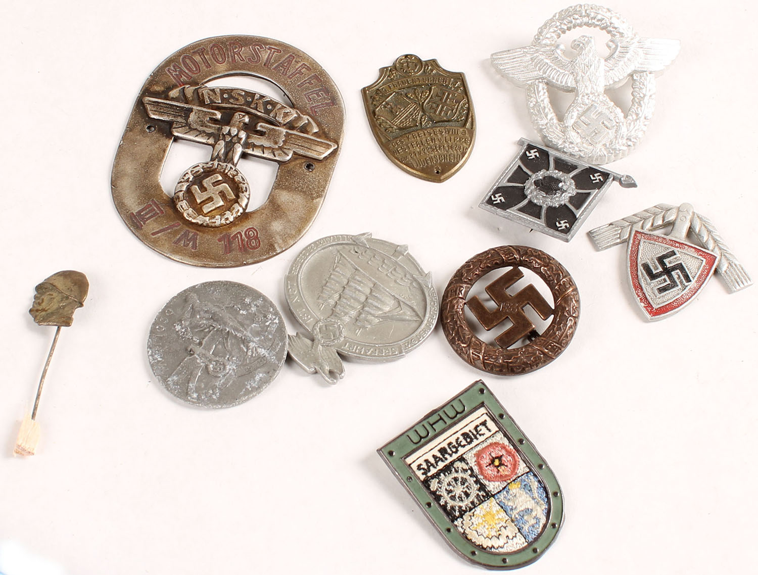 | Lot of 10 German/Nazi medals, pendants, Pinbacks. Grade: Excelle...