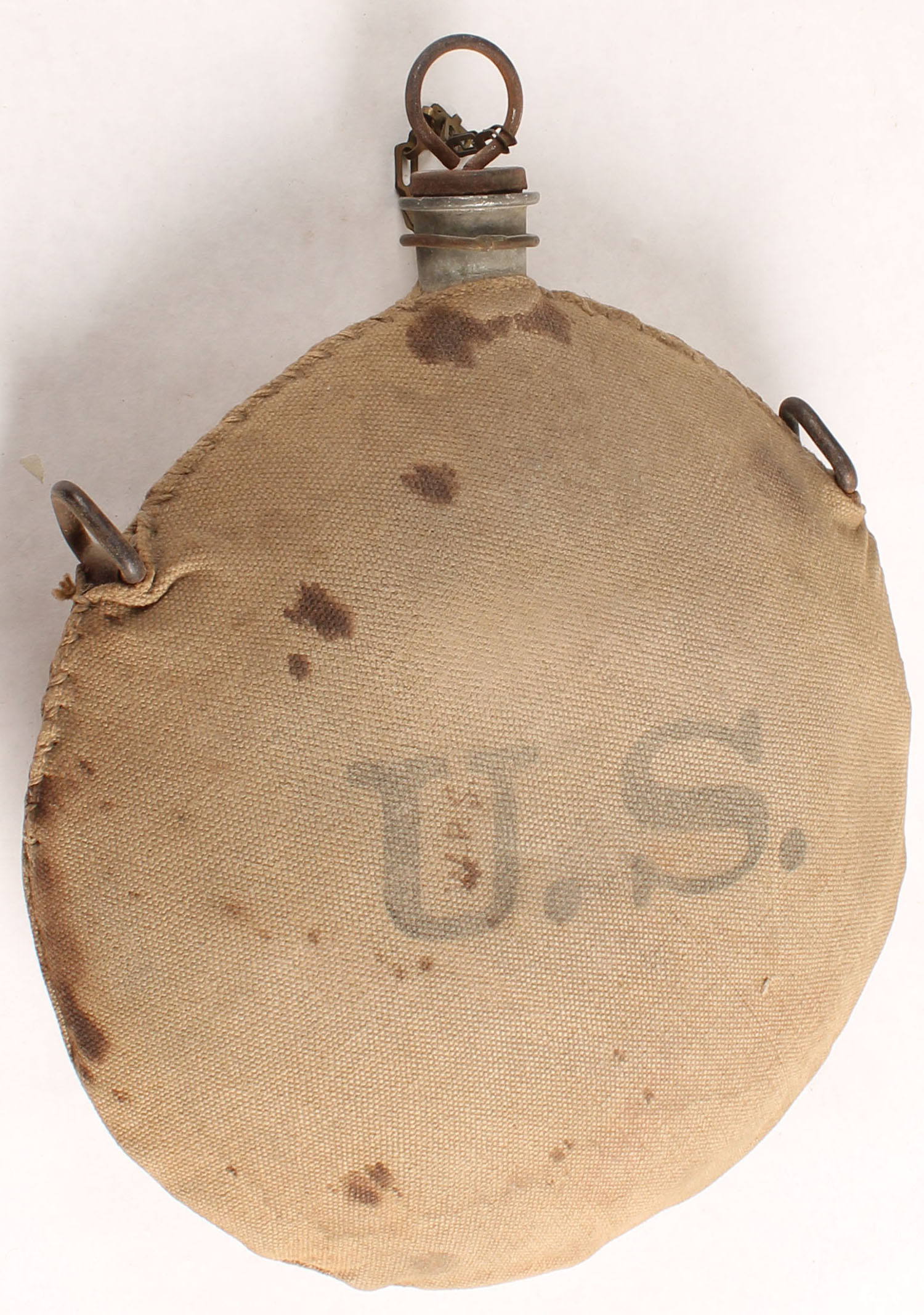 | US, M1878 Indian wars canteen, has cork plug, canvas has stains ...