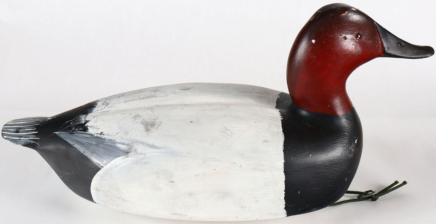 Canvasback Drake by Bill William Goenne, King City, CA, glass eyes, hollow wood, original paint, structurally excellent, 19'' OAL. Grade: Excellent - Value: 100 to 200