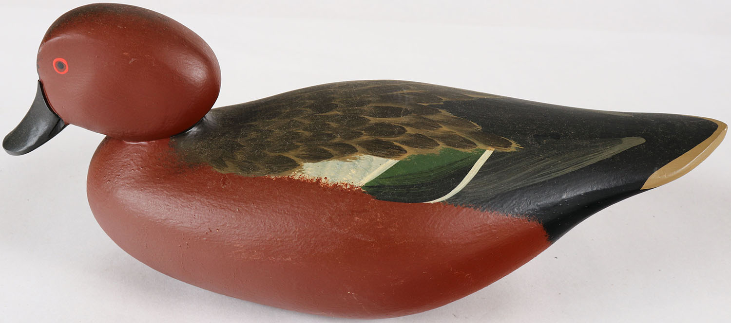 Cinnamon Teal Drake by Art Boxleitner, Willow Street PA, PE, solid wood, mint original paint, structurally excellent, 12'' OAL. Grade: Excellent ++ - Value: 80 to 120