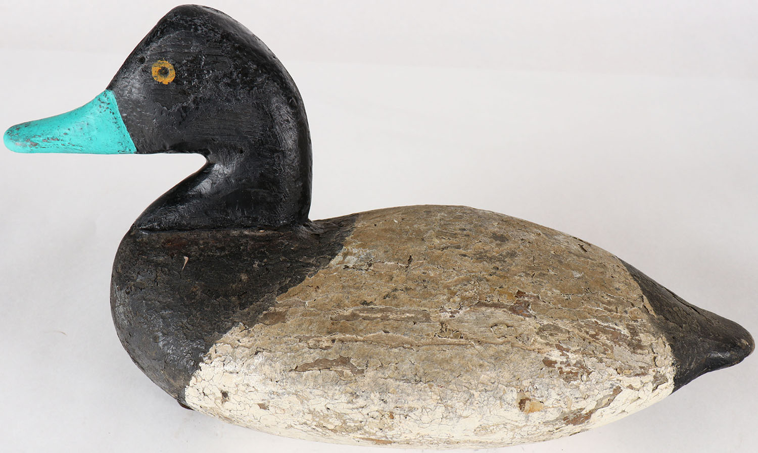 Bluebill Drake decoy by MD unknown carver, PE, solid wood, old repaint, structurally excellent, 13'' OAL. Grade: Very Good - Value: 20 to 40