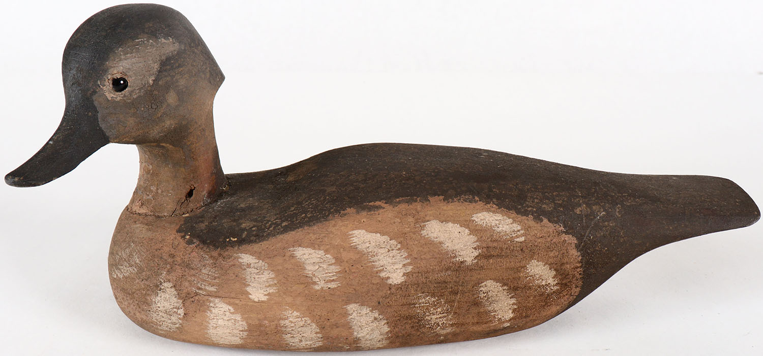 Woodduck Hen by unknown caver, GE, solid wood, original paint, structurally excellent, 12'' OAL. Grade: Excellent - Value: 20 to 40