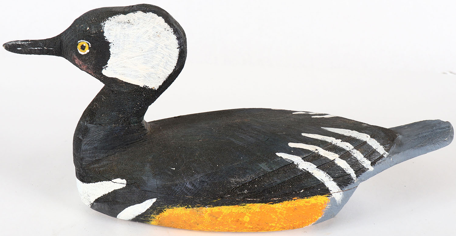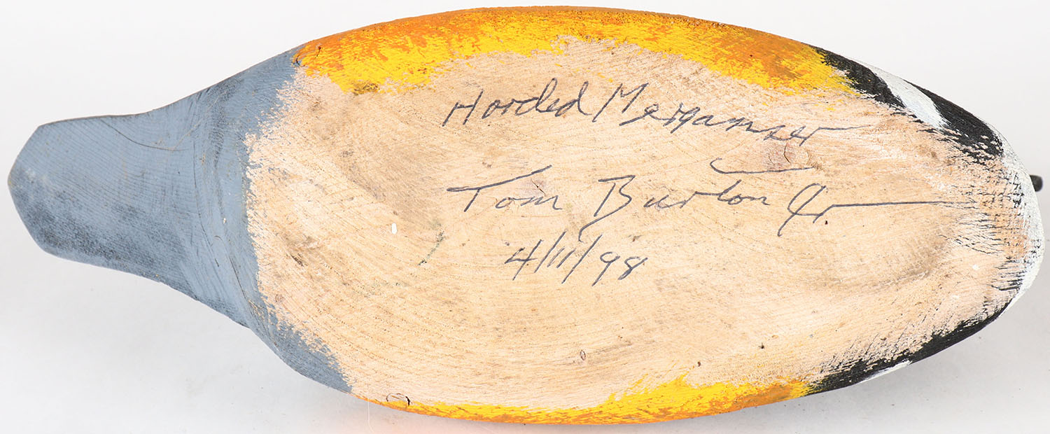 Hooded Merganser by Tom Burton Jr., PE, solid wood, nice original paint. Grade: Excellent - Value: 20 to 40
