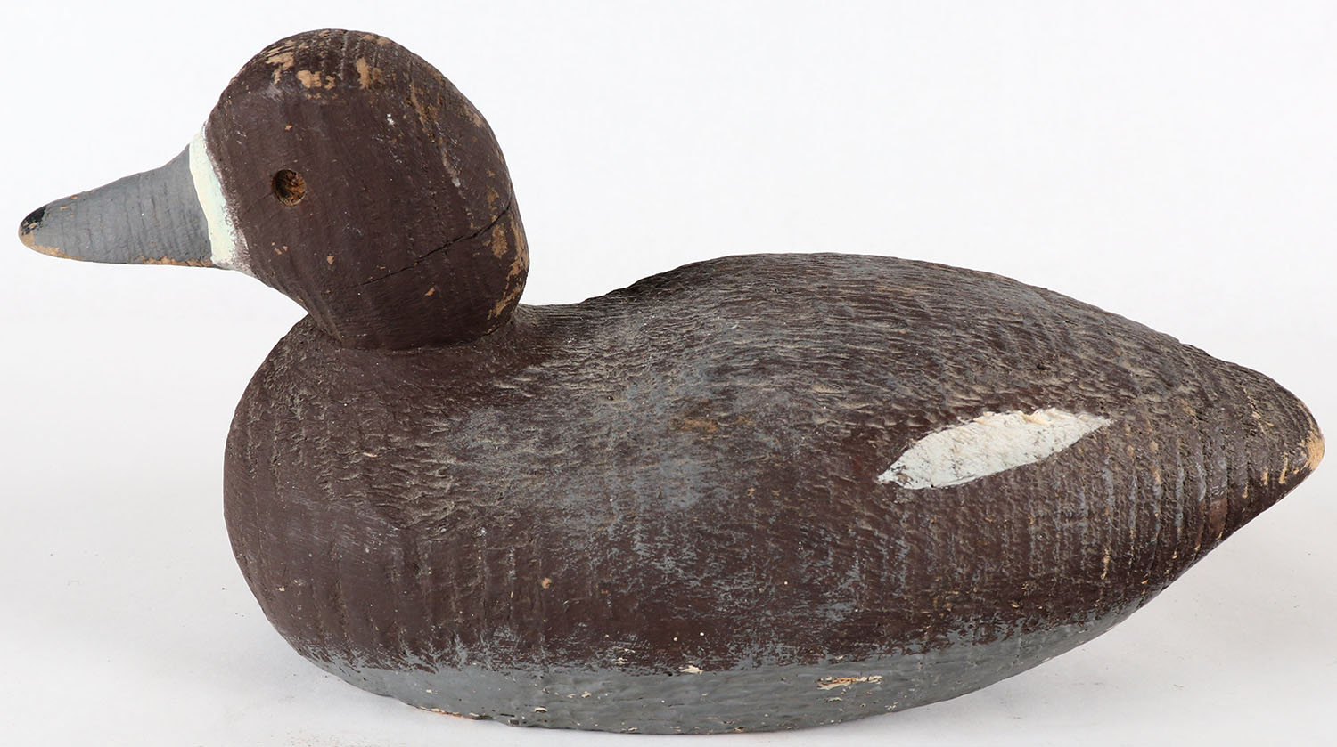 Ringbill Hen by Padco, GE are missing, solid wood, original and repainting shows. Grade: Very Good ++ - Value: 10 to 30