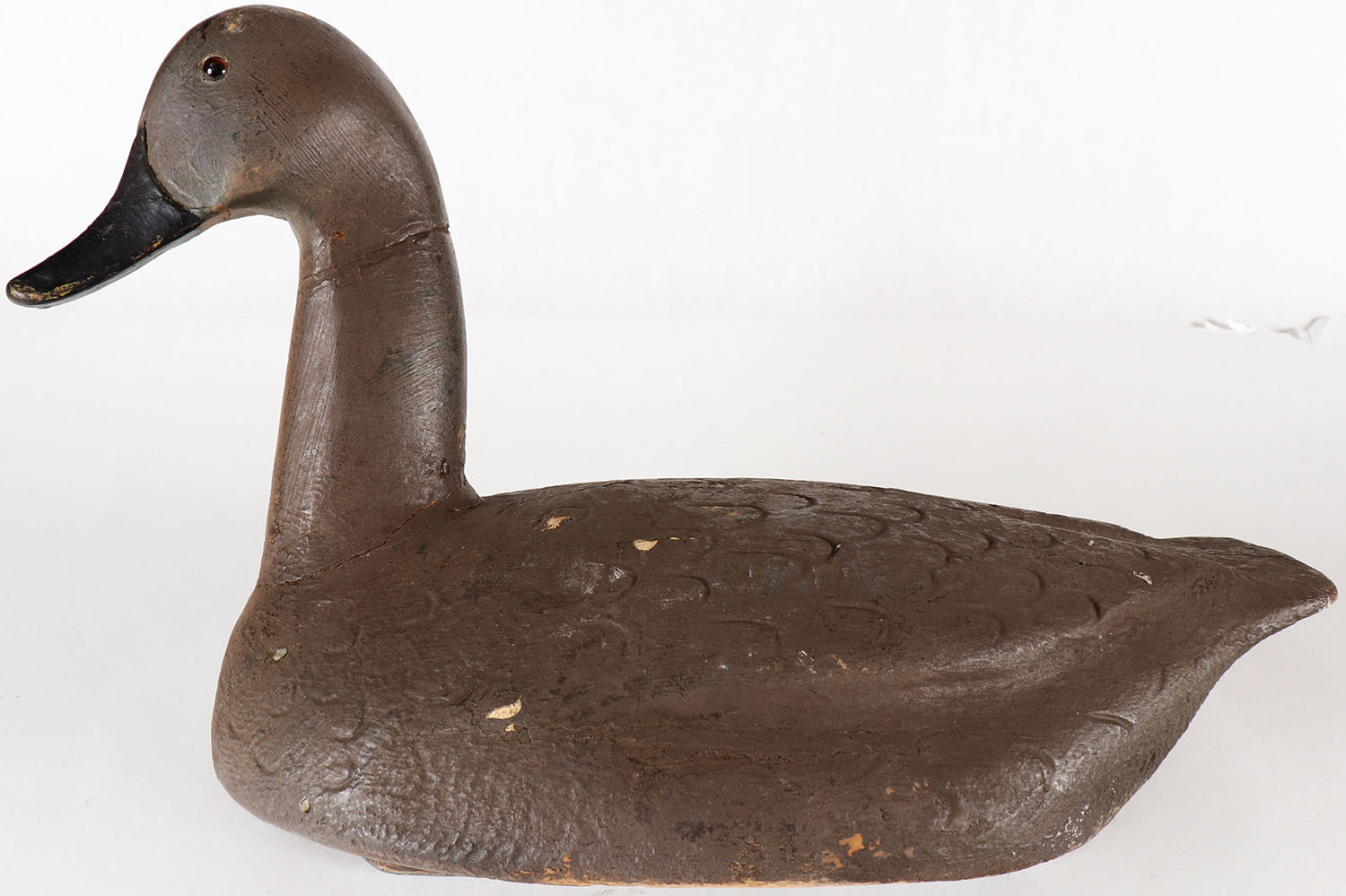 Canvasback Hen by unknown MI maker, GE, solid wood, old repaint, ha old neck age cracks. Grade: Very Good - Value: 20 to 40