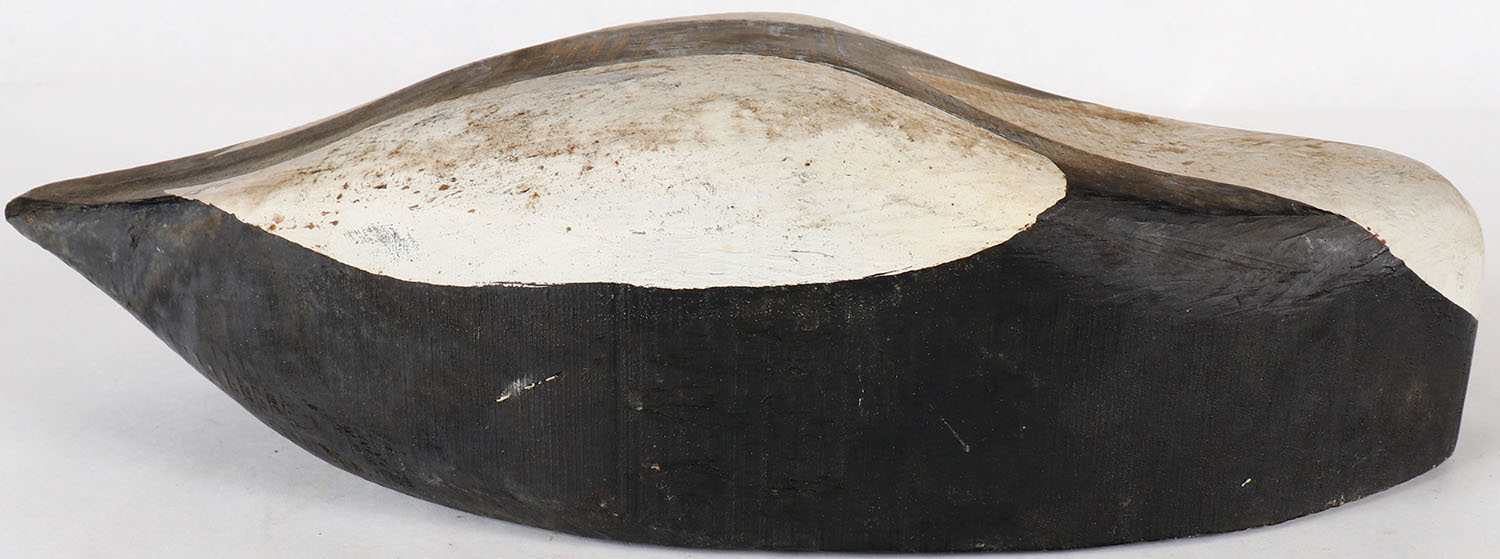Eider Drake by unknown maker, rare feeding pose, solid wood, original paint, structurally excellent. Grade: Excellent - Value: 20 to 40