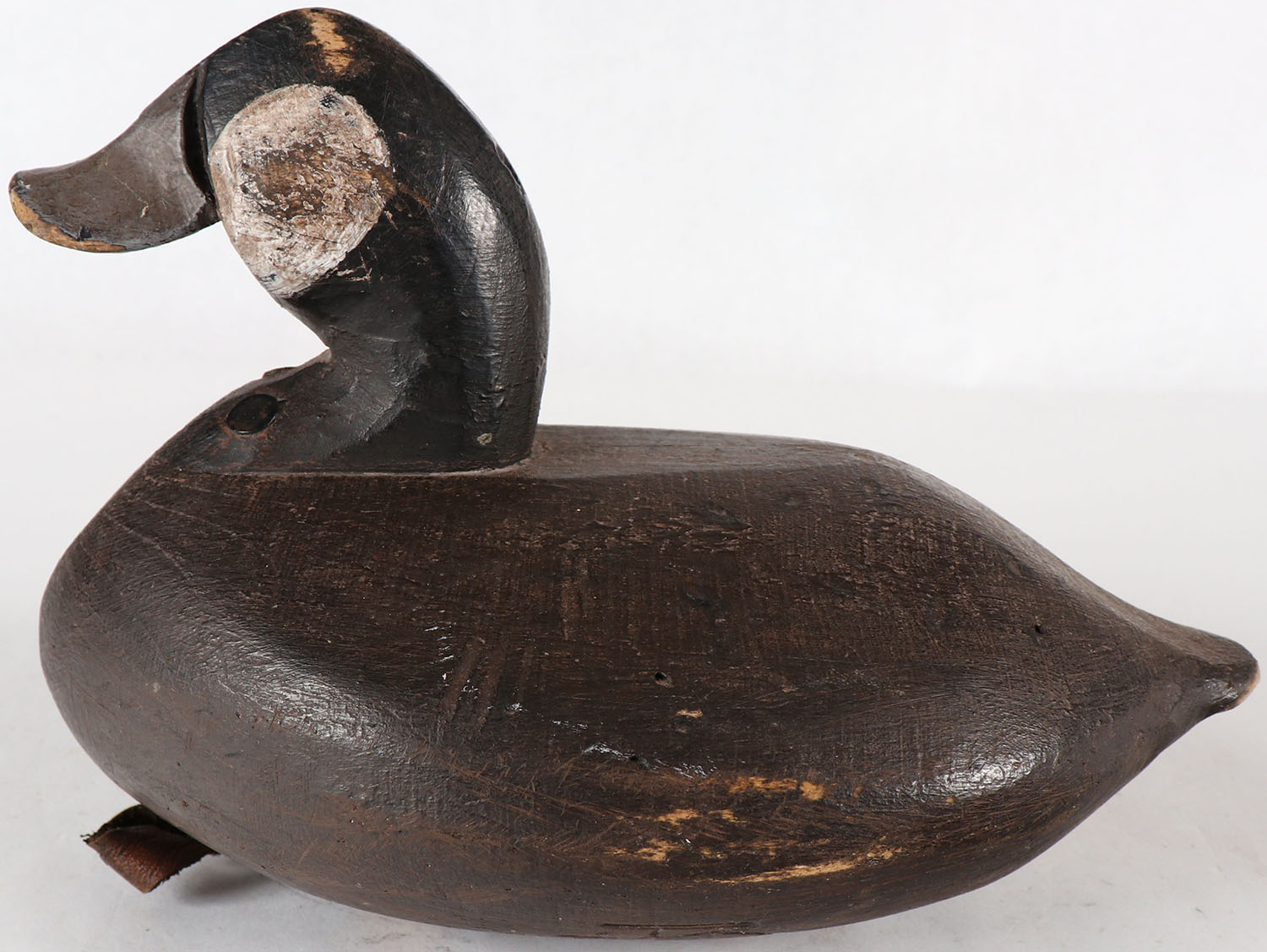 Ruddy duck Hen by Joe Racine, Upper Bay Decoys, Elkton Maryland, no eyes, solid wood, original paint, structurally excellent, copper tag by JOE RACINE on bottom. Grade: Excellent - Value: 50 to 125