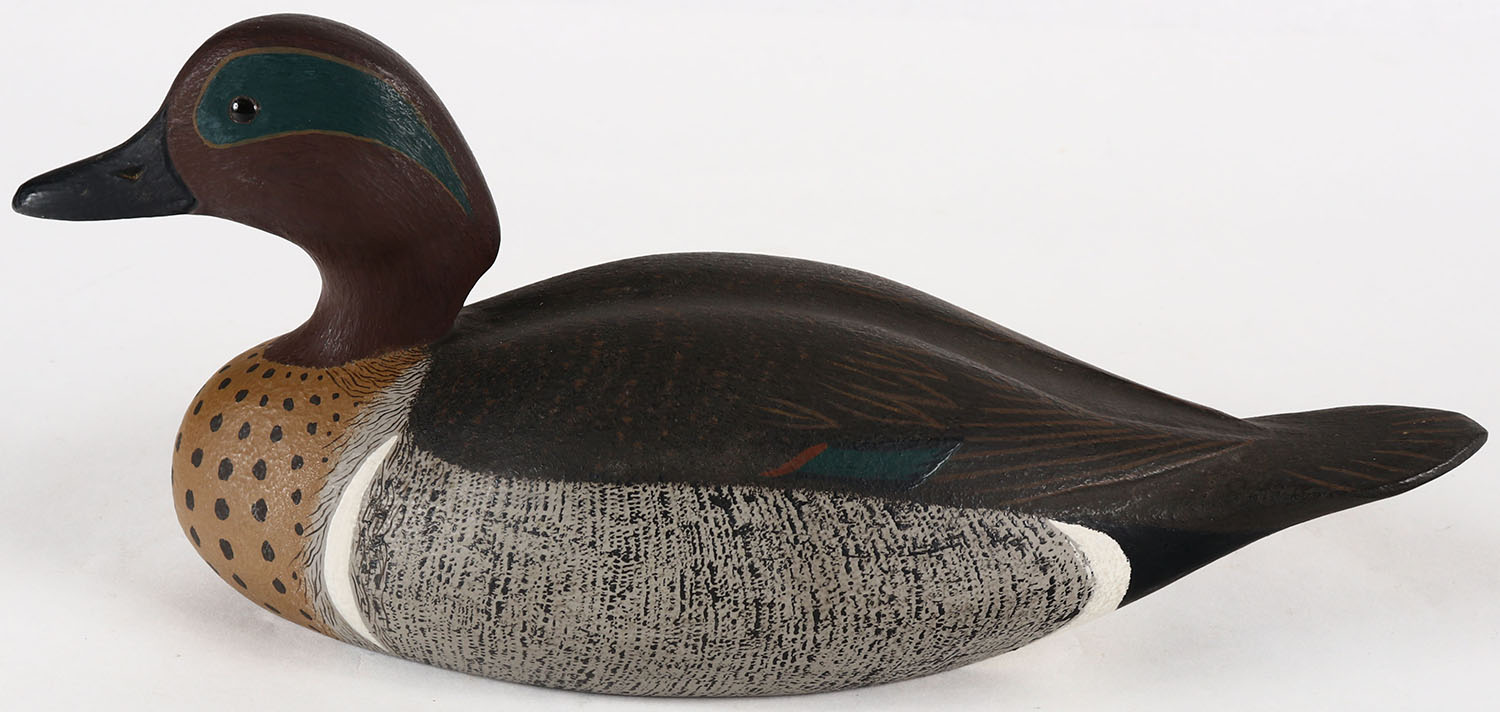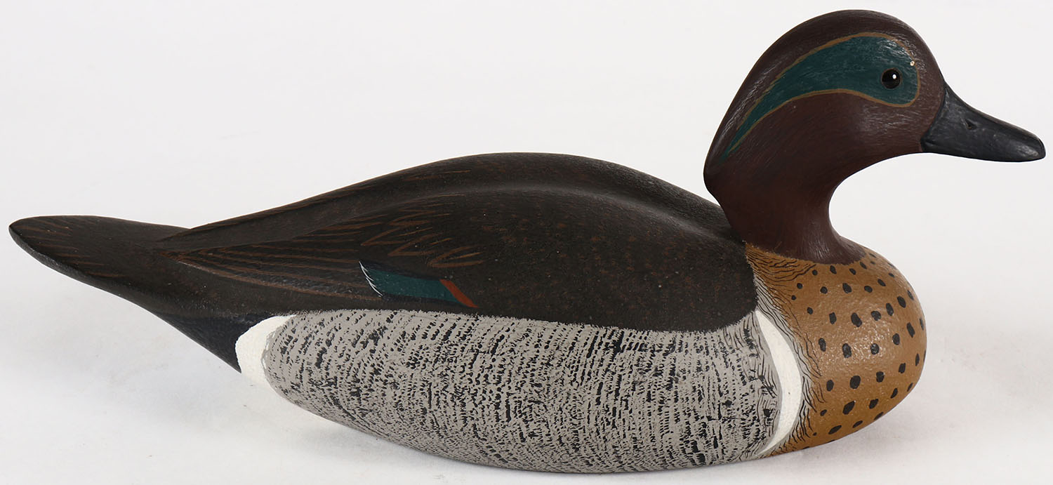 Greenwing Teal Drake by Wildfowler, GE, solid wood, original paint, structurally excellent. Grade: Excellent ++ - Value: 50 to 100