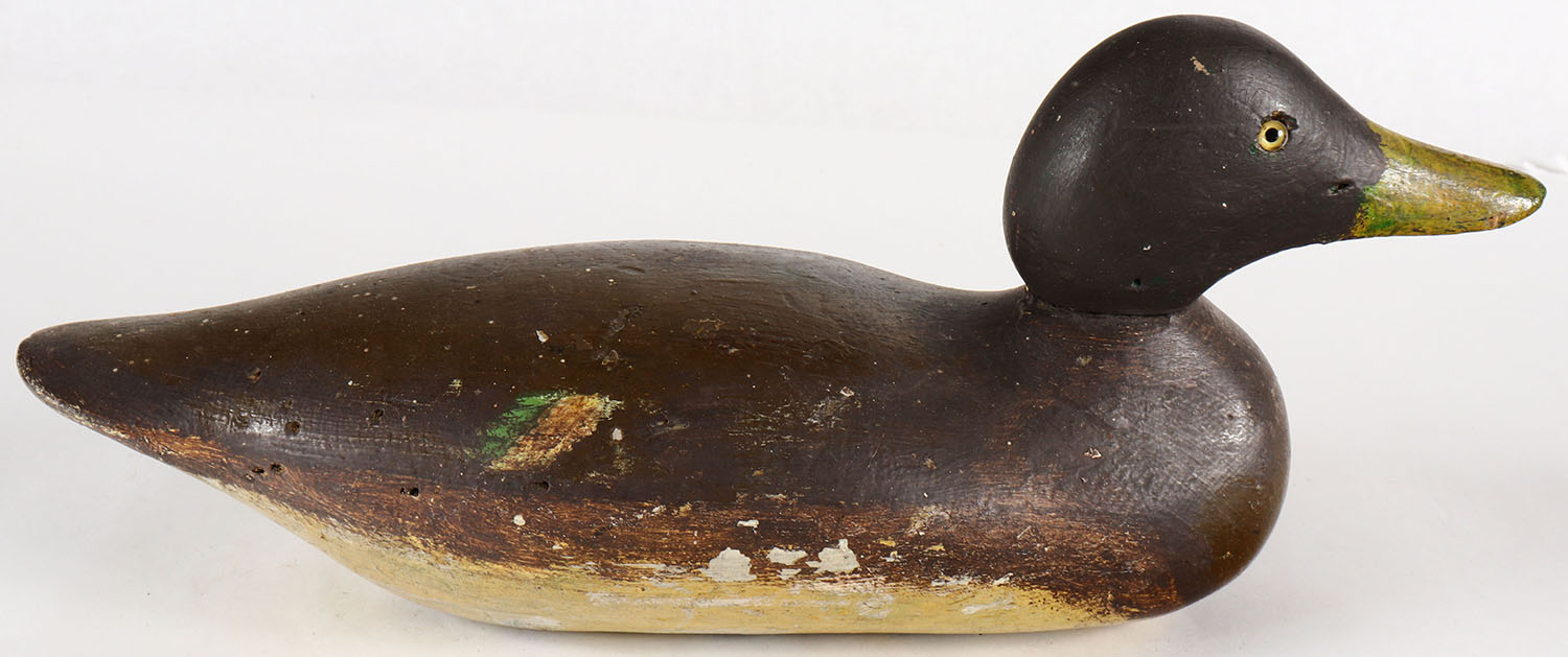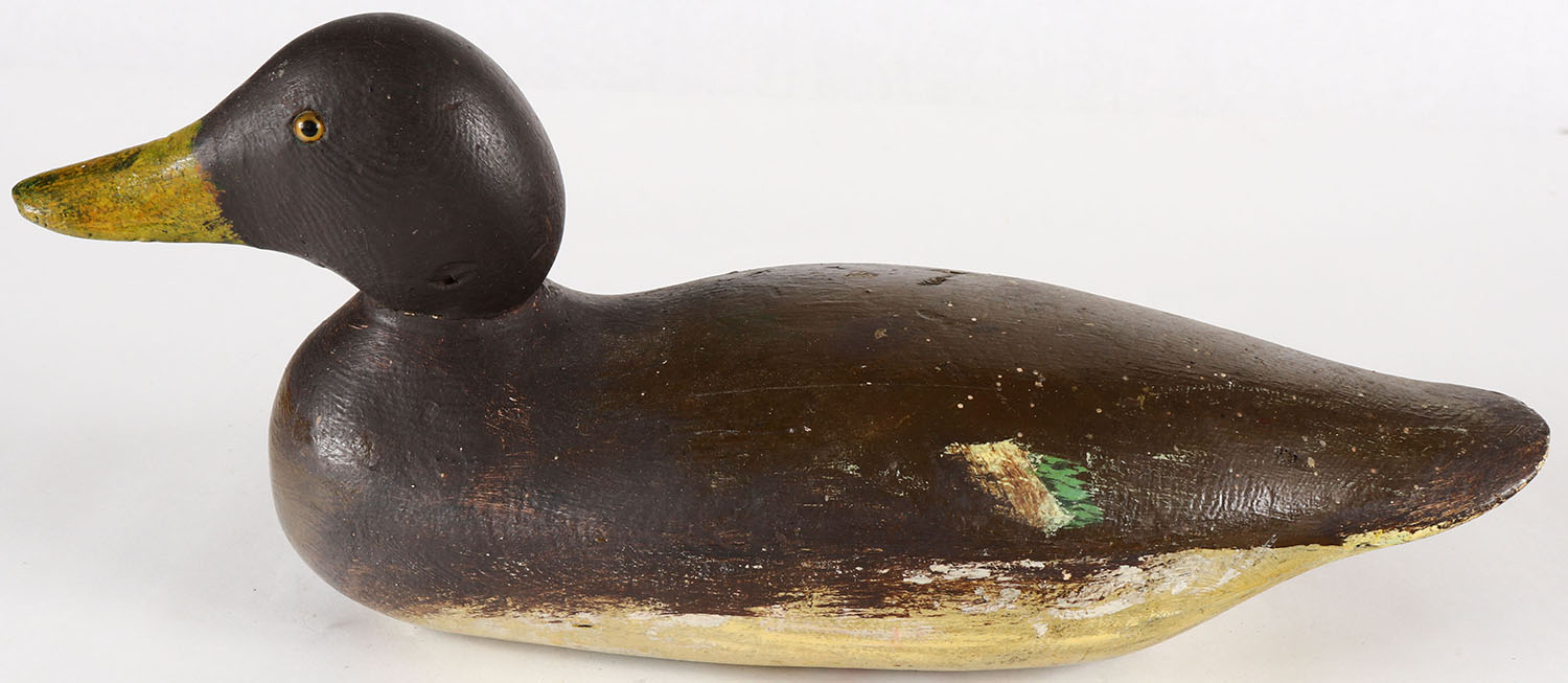 Mallard Hen by Mason Decoy Company, Detroit, MI, 1896-1924, Standard Grade, glass eyes, repaint, solid wood. Grade: Very Good + - Value: 20 to 50