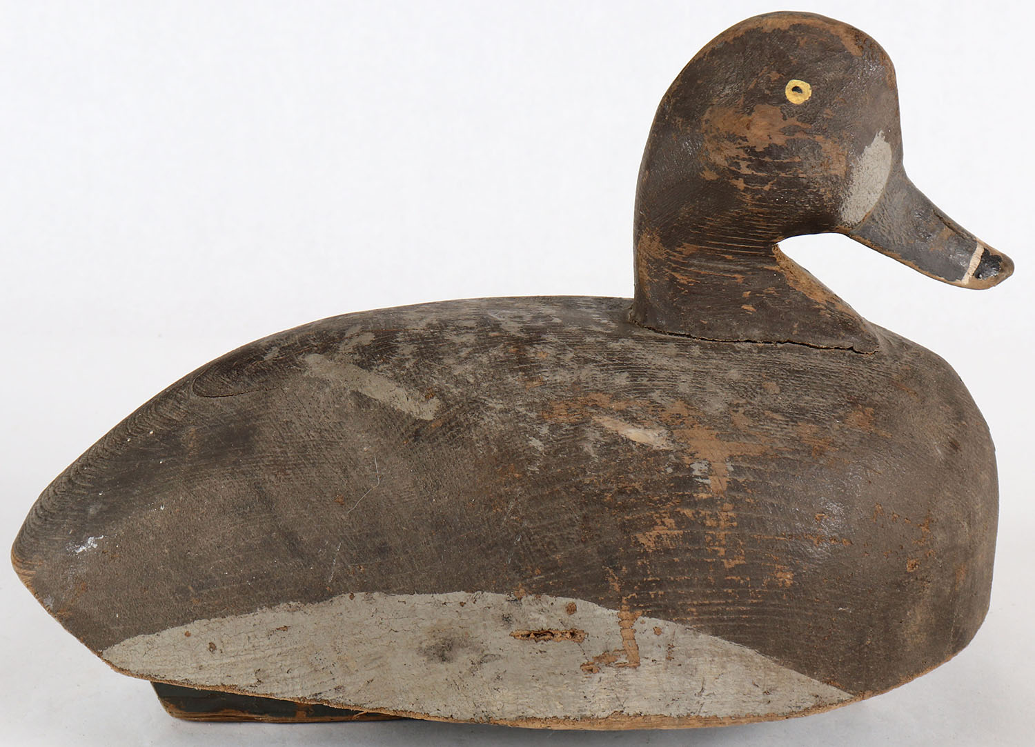 Bluebill Drake by unknown maker, PE, hollow wood, original paint shows wear. Grade: Very Good + - Value: 10 to 30
