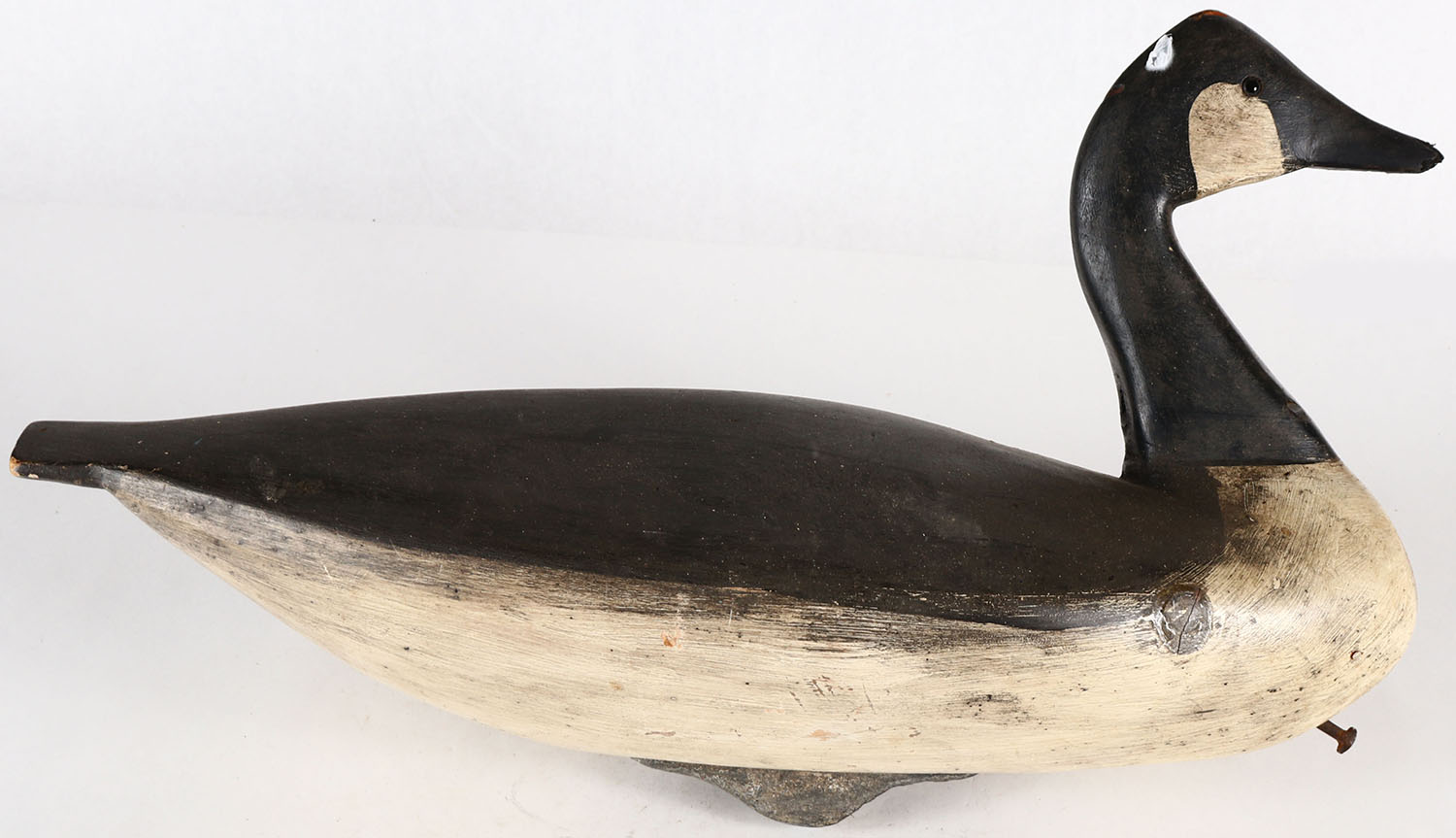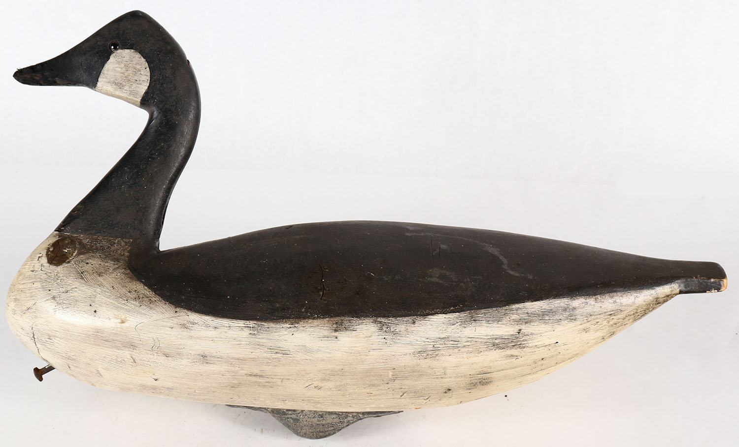 Canada Goose by unknown maker, GE, solid wood, aged contemporary original paint, bill has been chewed & repainted,
