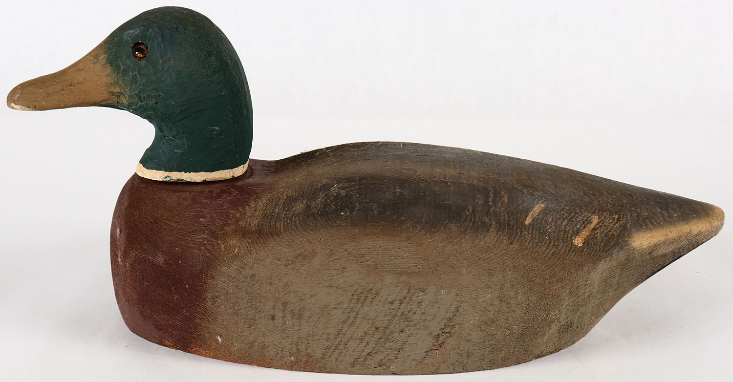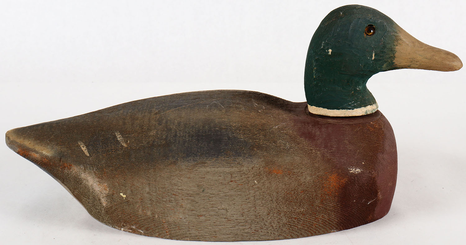 Mallard Drake by Herters Decoy Co., Waseca, MN, 1893 series, glass eyes, solid wood, original paint, structurally excellent, unmarked on bottom. Grade: Excellent ++ - Value: 40 to 100
