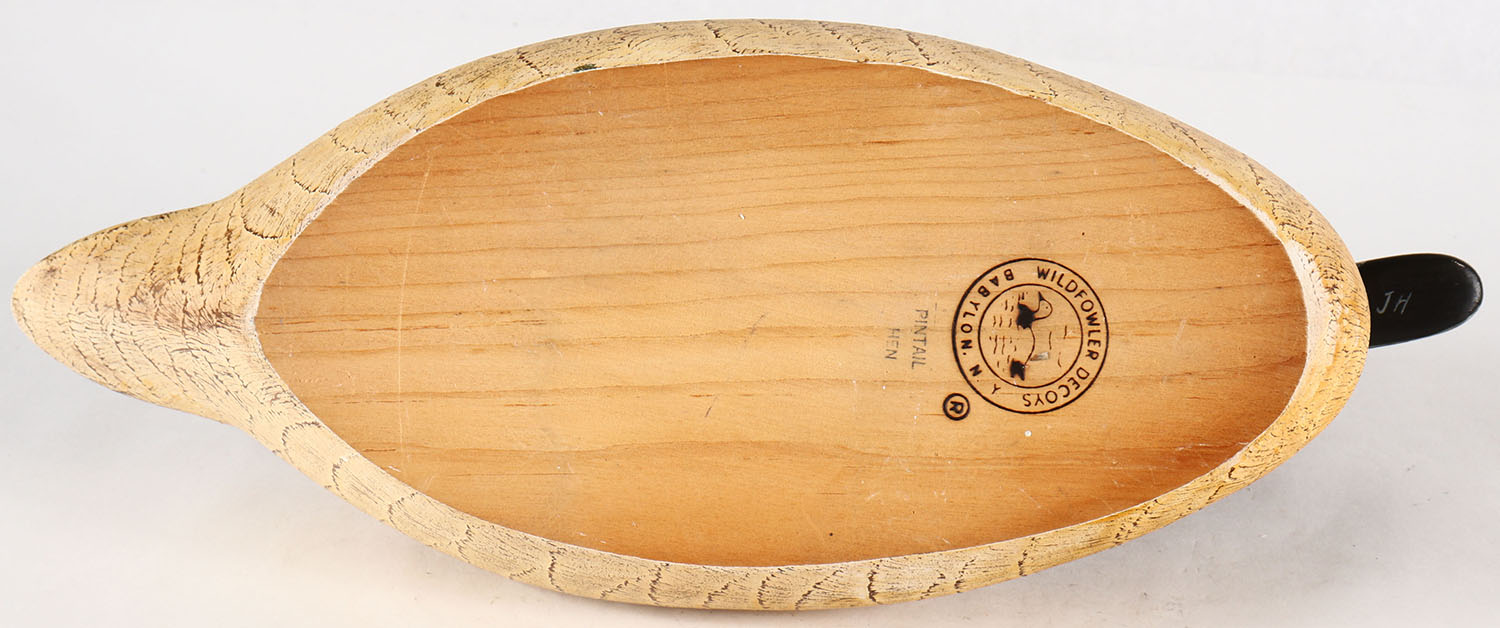 Pintail Hen by Wildfowler Decoy Co. Babylon NY, GE solid wood, orignal paint, stamped on bottom. Grade: Excellent - Value: 20 to 40