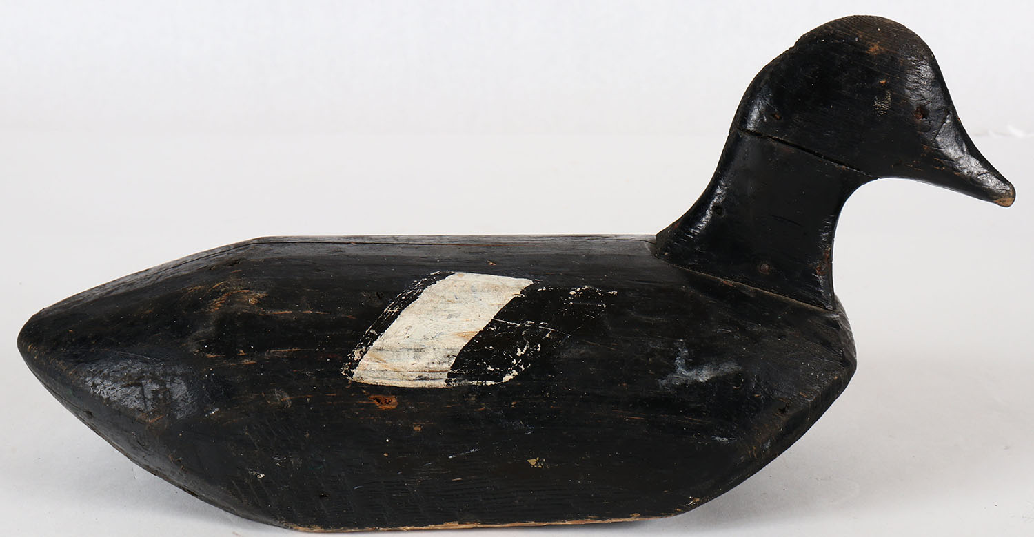 Scoter by unknown carver, no eyes, solid wood, orignal paint. Grade: Very Good + - Value: 20 to 40