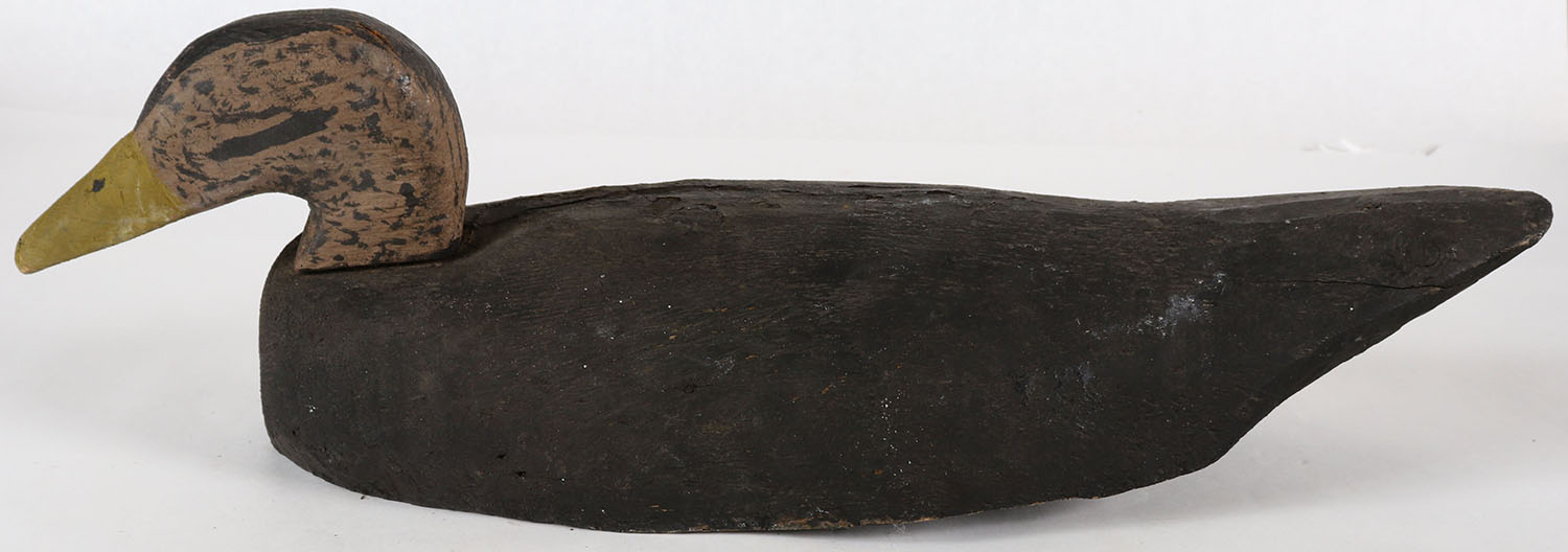 Black Duck by unknown carver, no eyes, solid wood, orignal paint, 21'' OAL. Grade: Very Good ++ - Value: 10 to 30