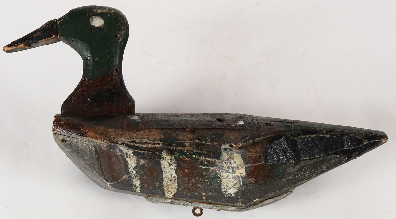 Mallard Drake by unknown carver, PE, solid wood, original paint, has metal back that looks to be on it when made. Grade: Very Good ++ - Value: 10 to 50