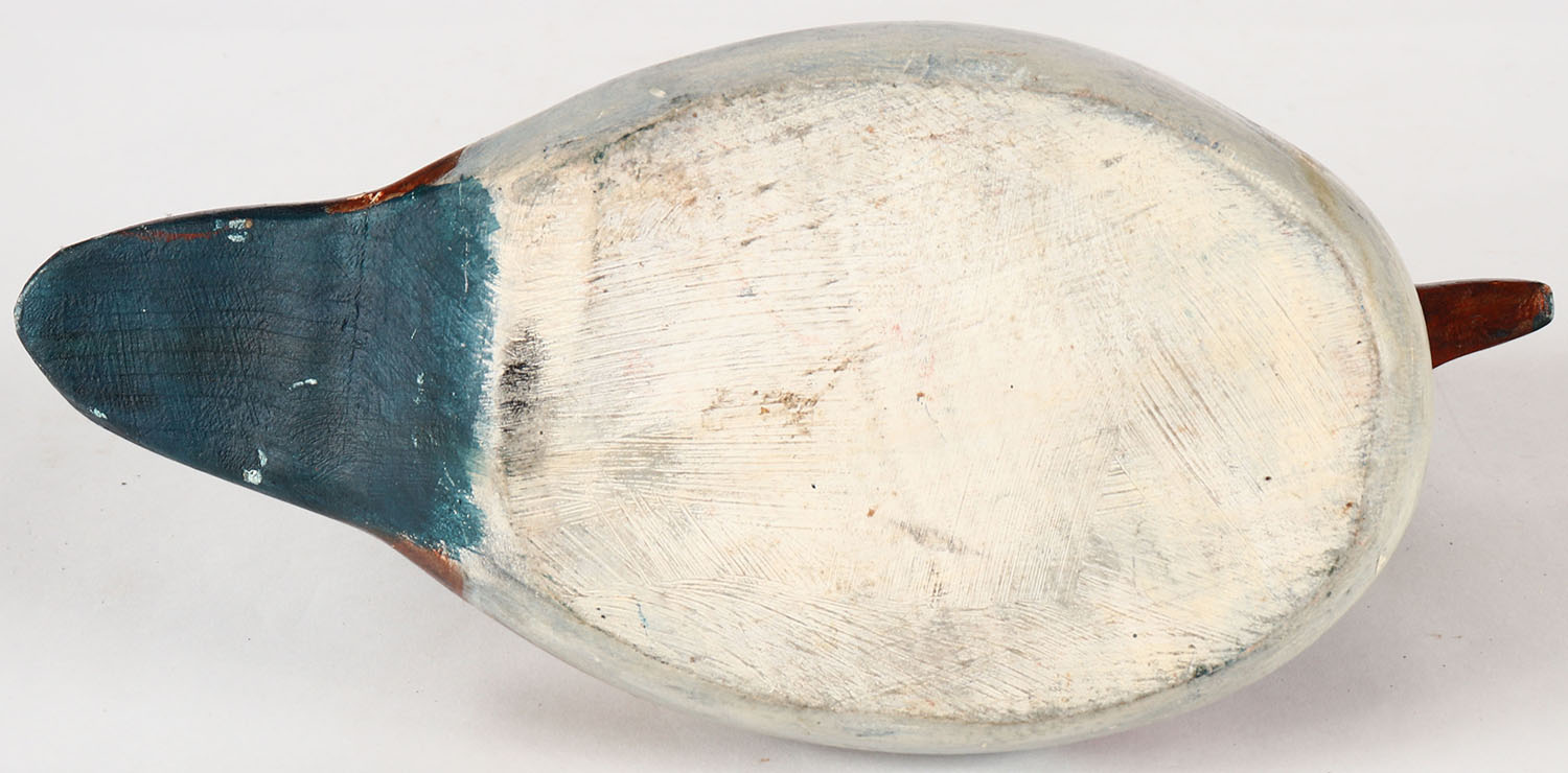 Woodduck Drake by unknown carver, GE, solid wood, original paint, has neck crack. Grade: Very Good + - Value: 20 to 40