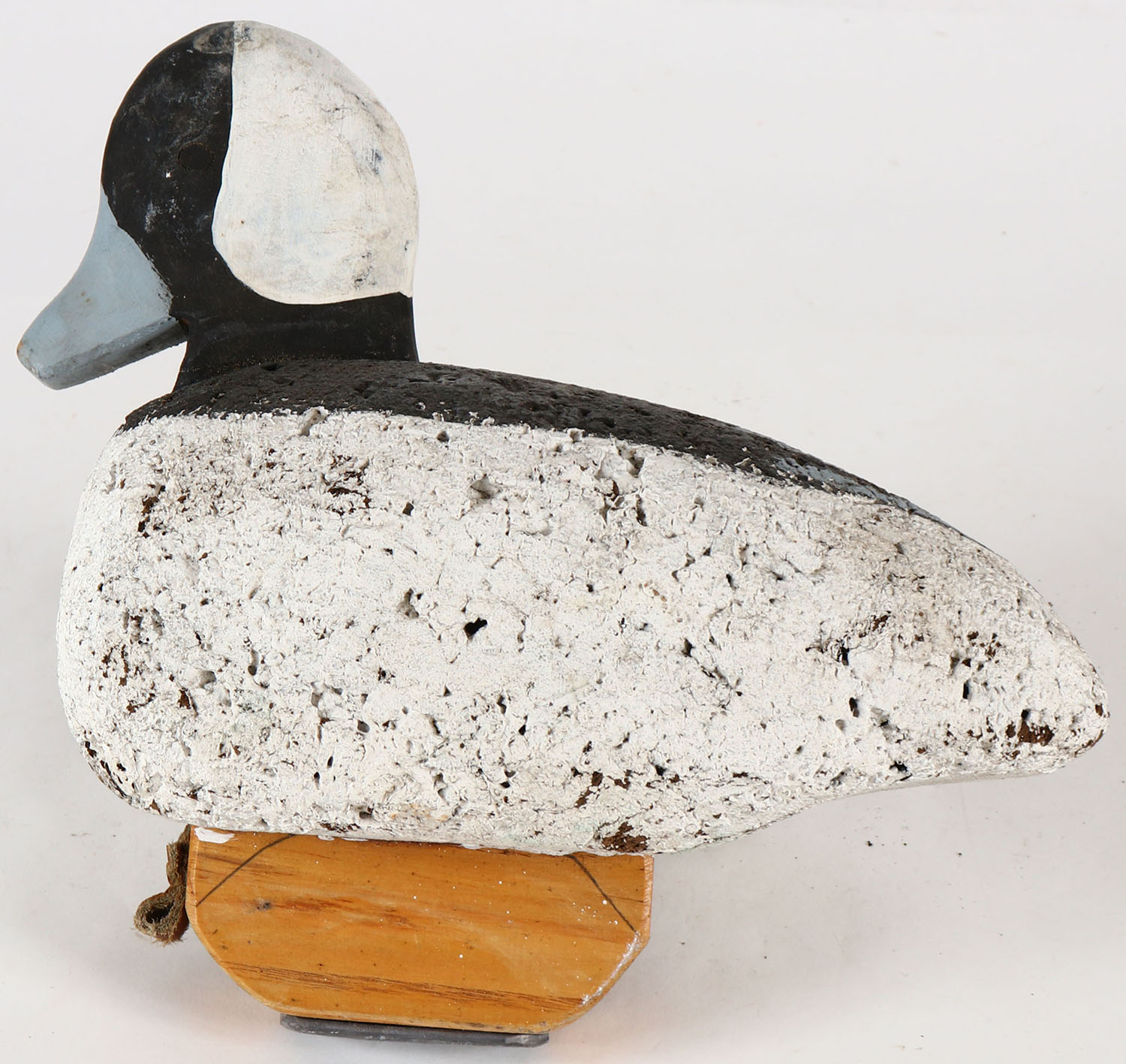 Bufflehead Drake by unknown maker, No eyes, solid cork body, wood head, original paint, structurally excellent. Grade: Excellent - Value: 10 to 40