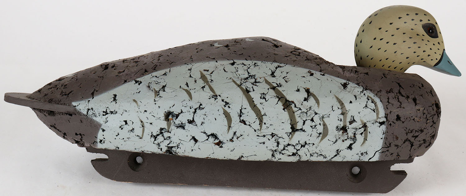 Widgeon Hen by LL Bean, marked on keel, glass eyes, solid cork body, wood head, original paint, structurally excellent. Grade: Excellent ++ - Value: 30 to 60