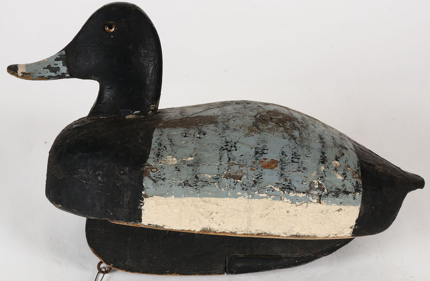 Bluebill Drake by unknown maker, GE, solid wood, wood head, old repaint, structurally excellent. Grade: Excellent - Value: 20 to 50