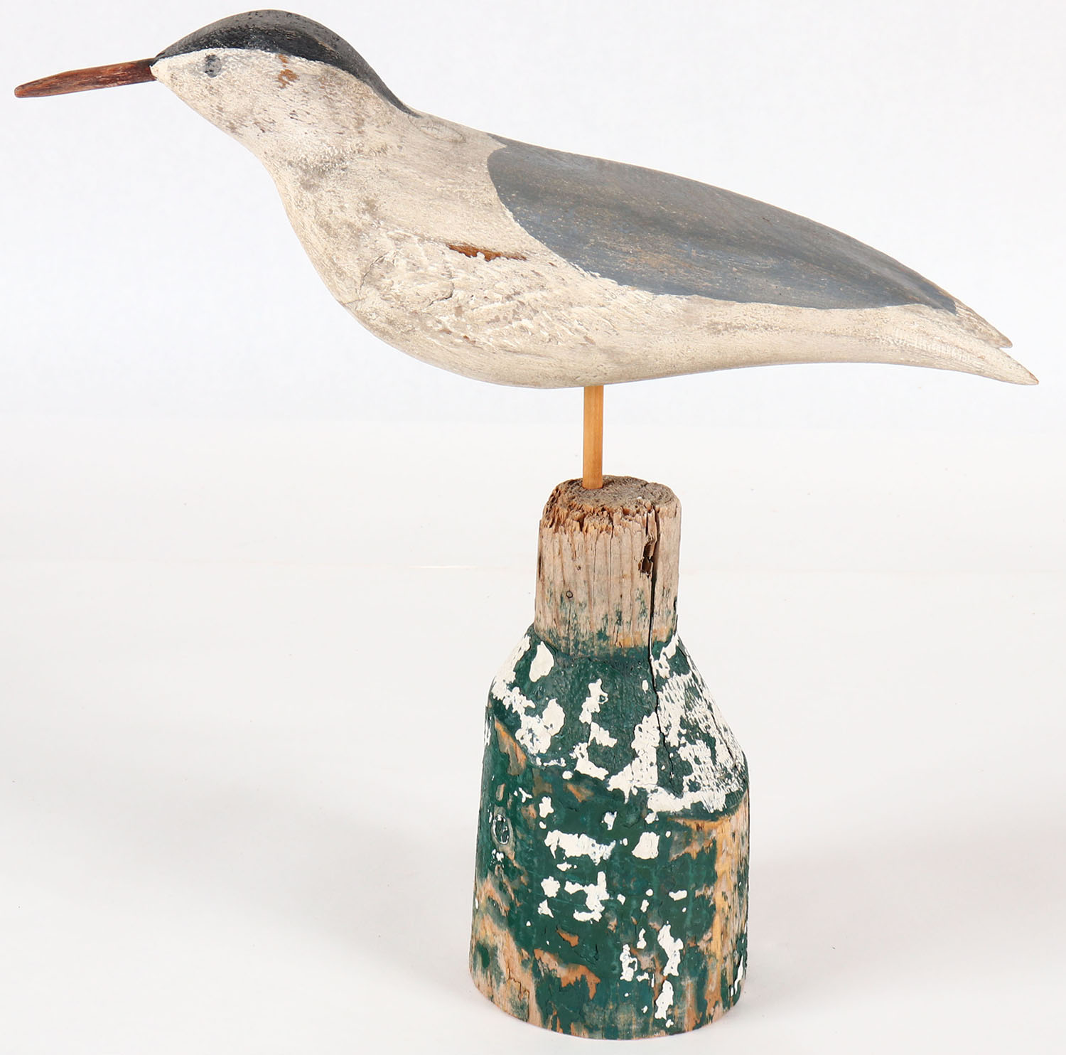 Seagull by unknown maker, PE. Solid wood, original paint, on stand, 13'' tall. Grade: Excellent - Value: 10 to 30
