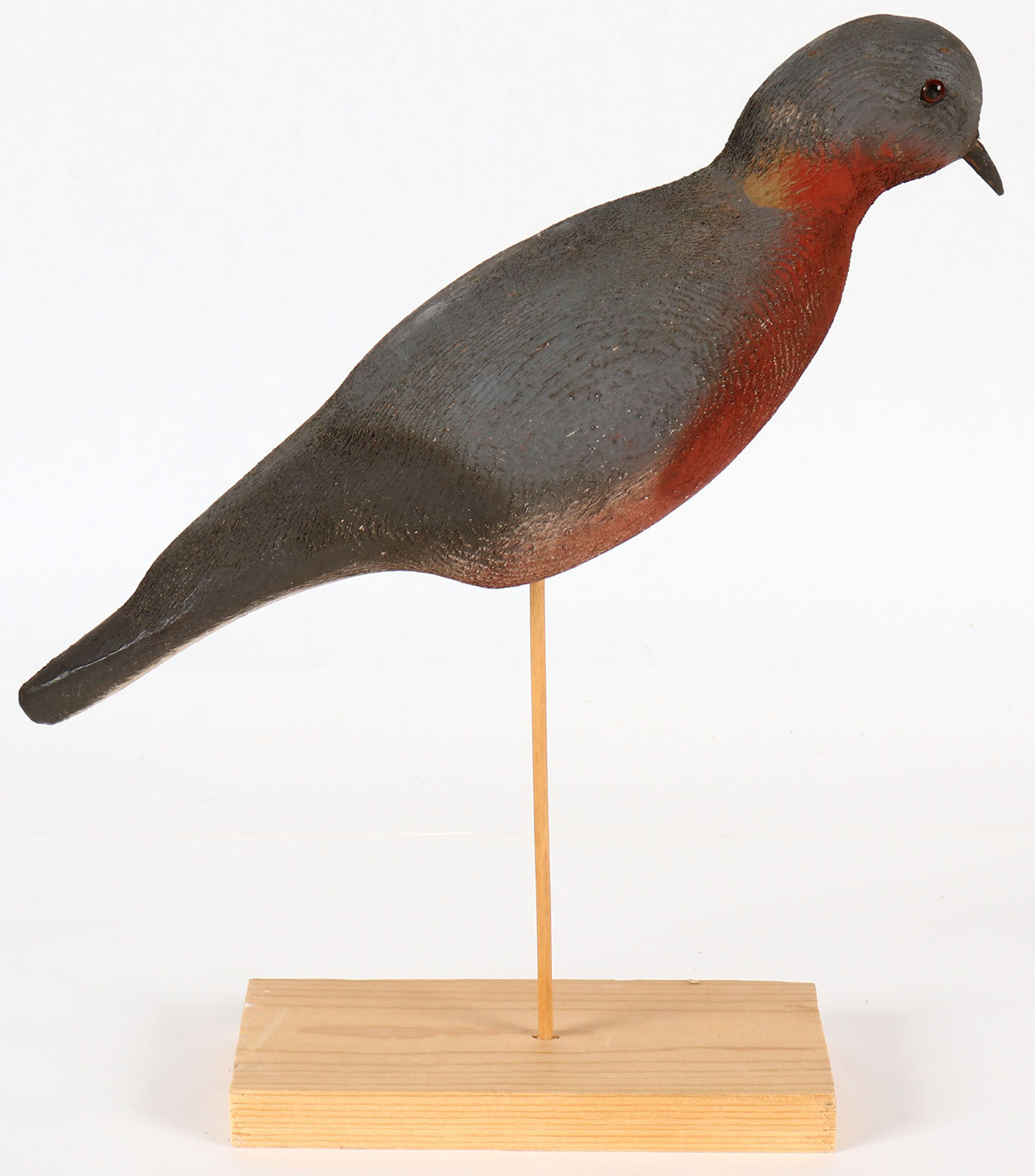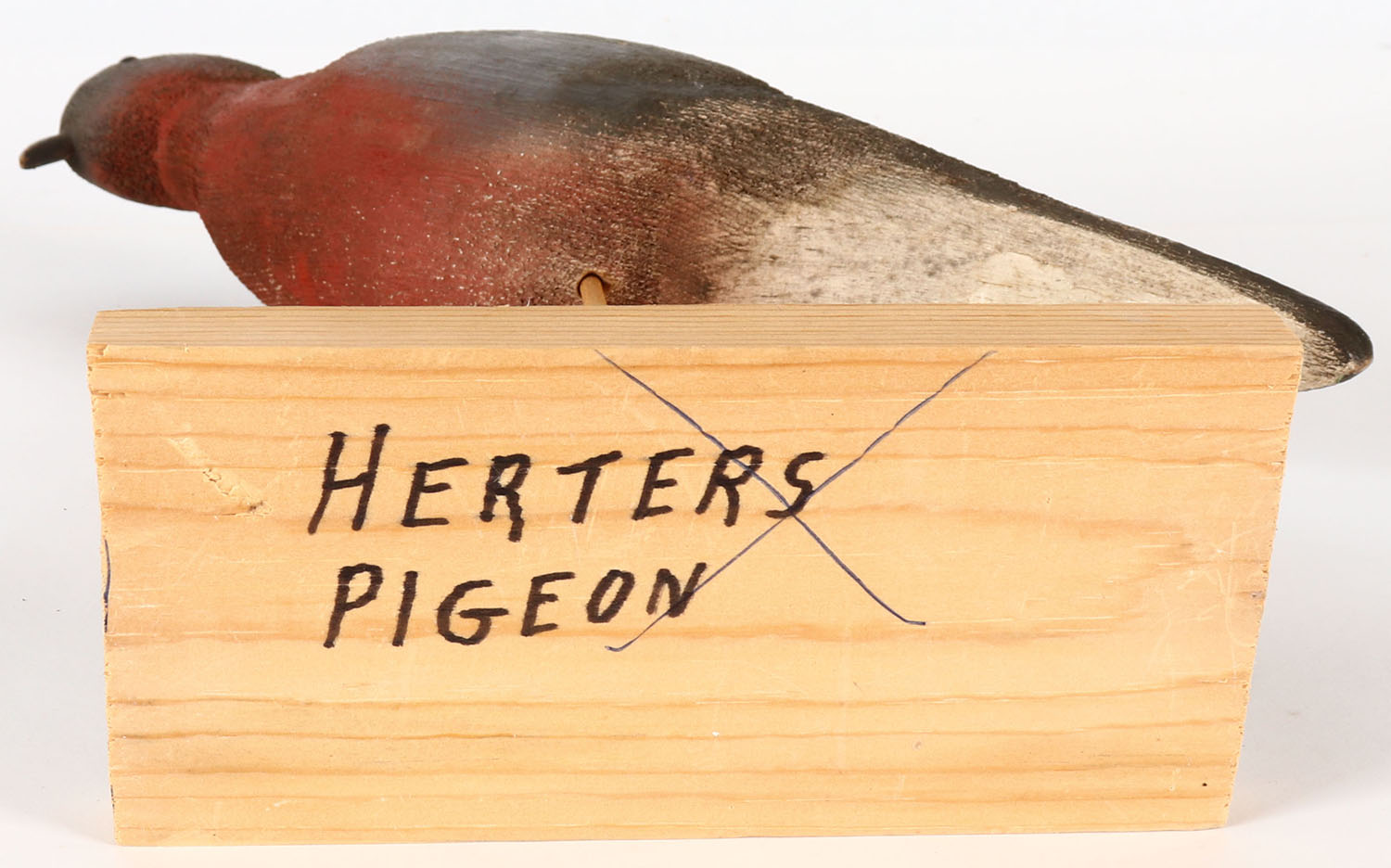 Pigeon by Herters, GE, solid wood, original paint, on stand, 13 1/2'' tall. Grade: Excellent - Value: 20 to 60