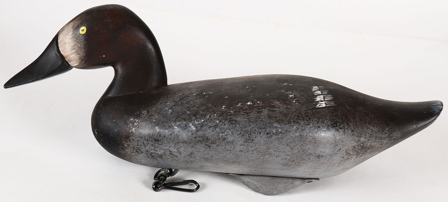 Canvasback Hen by Ed Heltsley, MD, circa 1986, PE, hollow wood, original paint, signed on bottom. Grade: Excellent - Value: 10 to 50