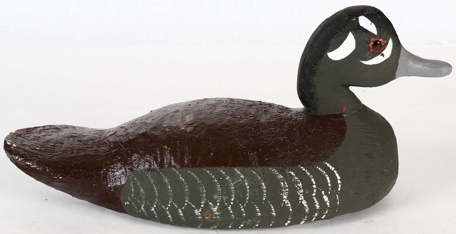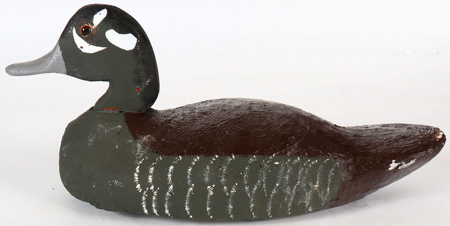 Harlequin Hen by unknown maker, glass eyes, solid wood, repaint, structurally excellent. Grade: Very Good + - Value: 6 to 20