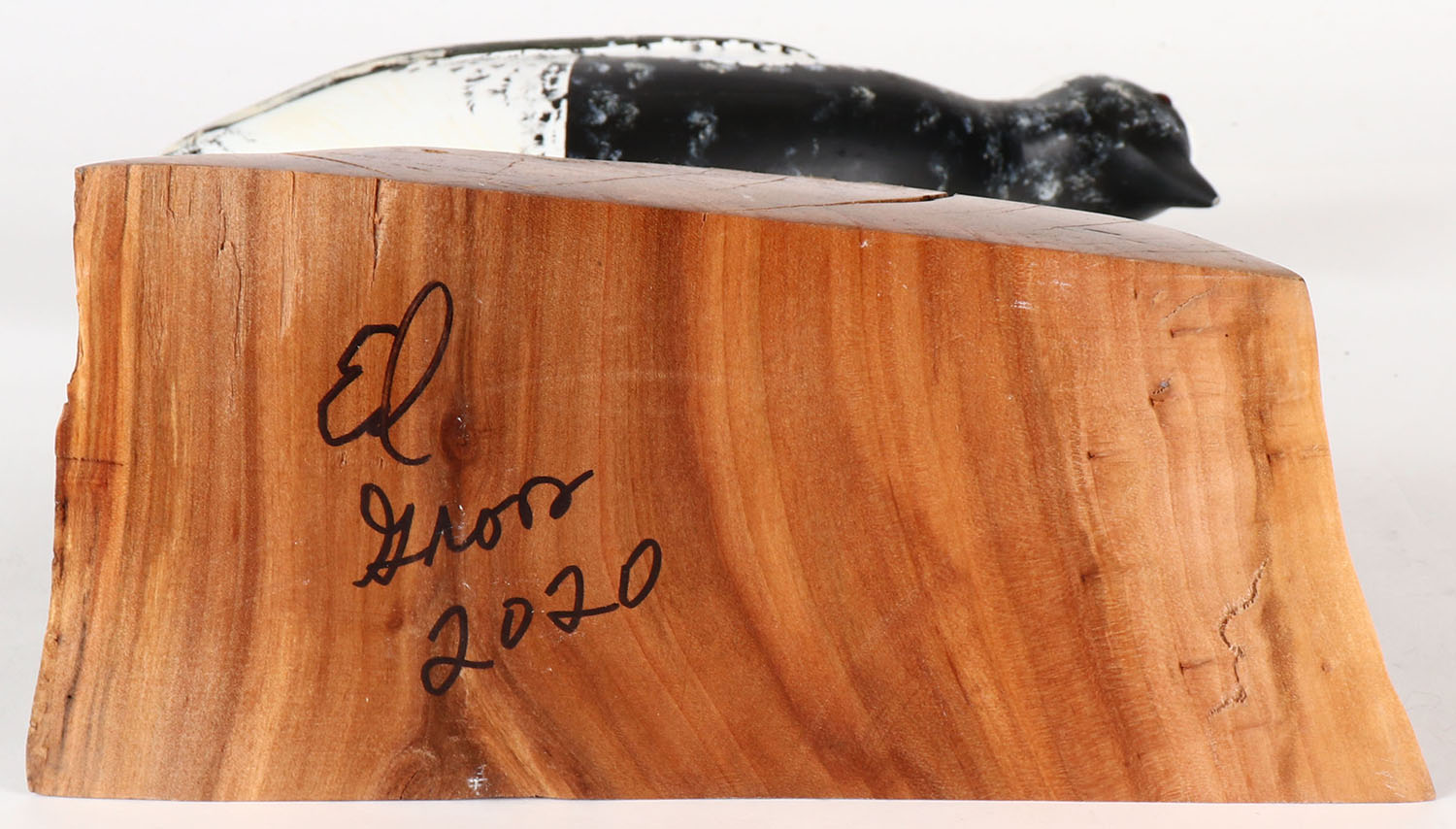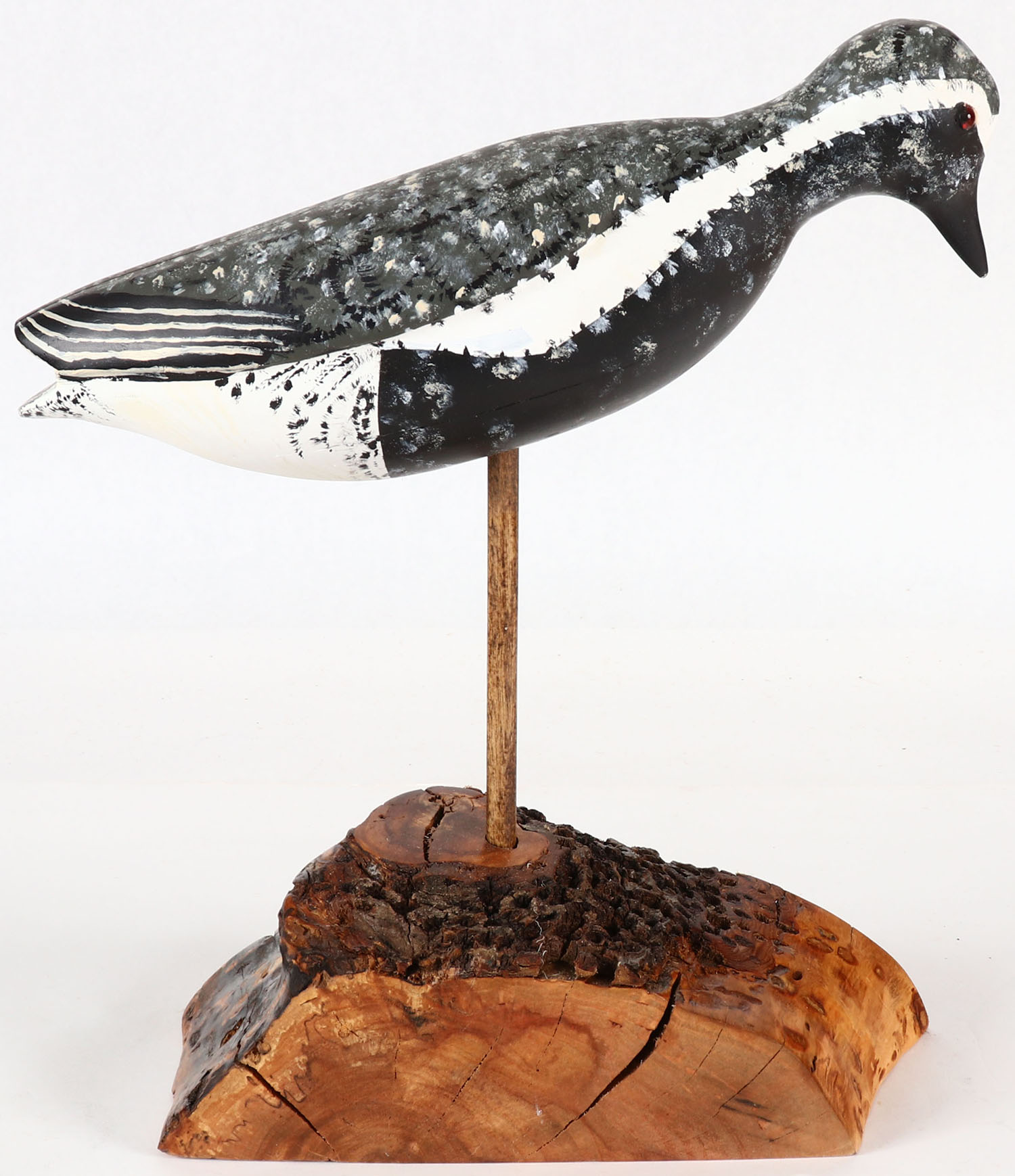 Black Belly Plover by Ed Gron??, signed on bottom, GE, solid wood, original paint, 11'' OAL. Grade: Excellent - Value: 20 to 60
