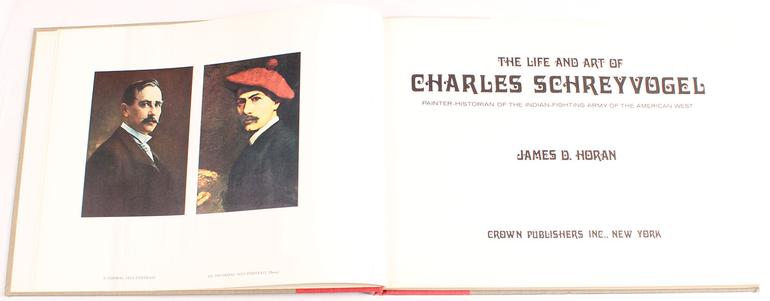 The Life and Art of Charles Schreyvogel by James D Horan 1969. 12 1/2'' x 16 1/2'', 97 pages, color photos, pages clean, binding tight, hardcover very good, missing paper dust jacket. Grade Good ++ - Value: 10 to 60