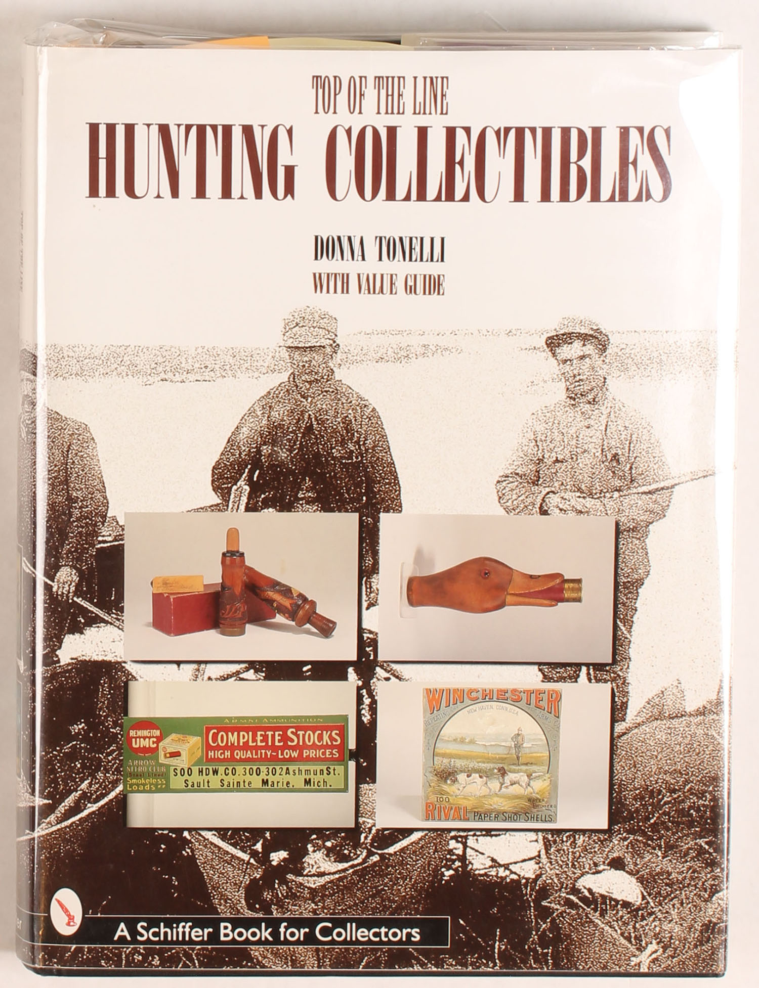 Top Of The Line Hunting Collectibles by Donna Tonelli with Value Guide 1998, 9'' x 12''. 278 pages, pages clean, binding tight, hardcover and dustjacket excellent, b/w and colored images. Value: $160 Grade: Excellent + - Value: 10 to 160
