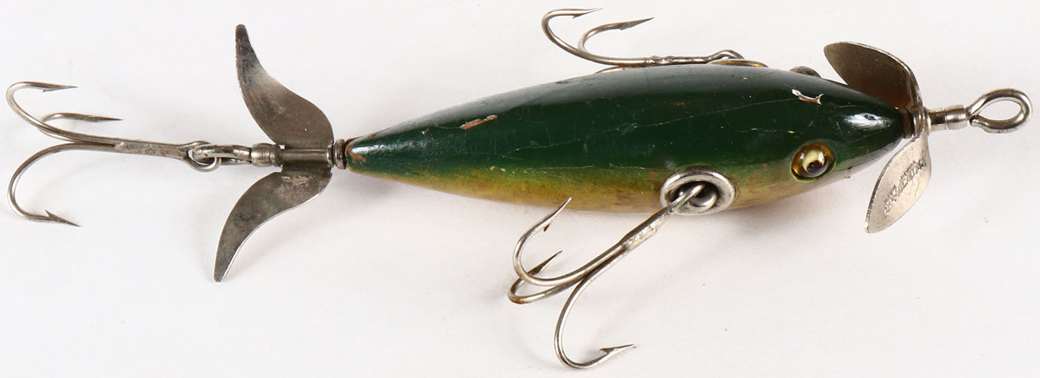 | Rare Winchester wood lure No. 9011, 3 hook lure, green back, GE,...