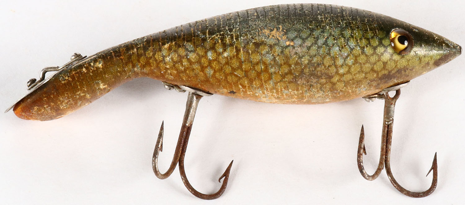 | Heddon Dowagiac Tadpolly, 2 hook wood lure, Green Scale finish, ...