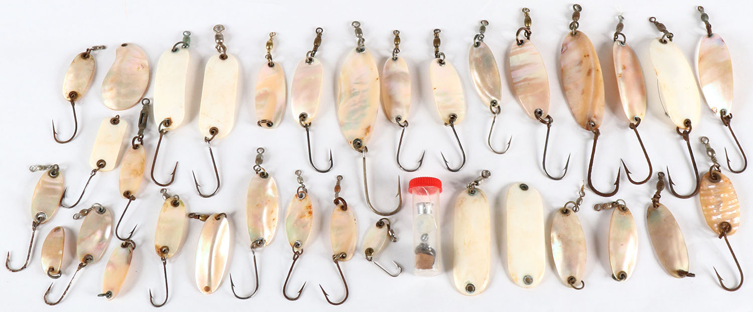 Lot of Abalone spoons/Pearl Wobbler Spoon assortment. Grade: Excellent - Value: 10 to 30