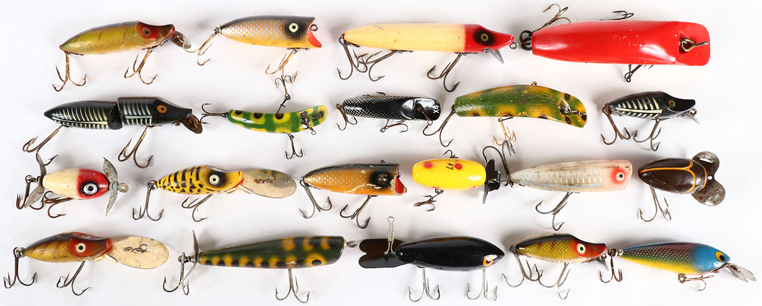 | Lot of fishing lures, many are Heddon. Grade: Very Good ++ -...