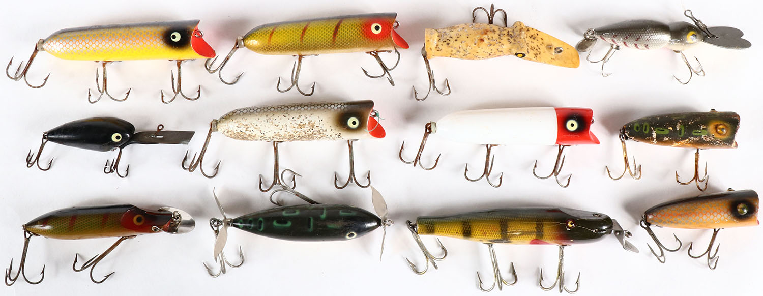 | Lot of fishing lures, many are Heddon. Grade: Very Good ++ -...