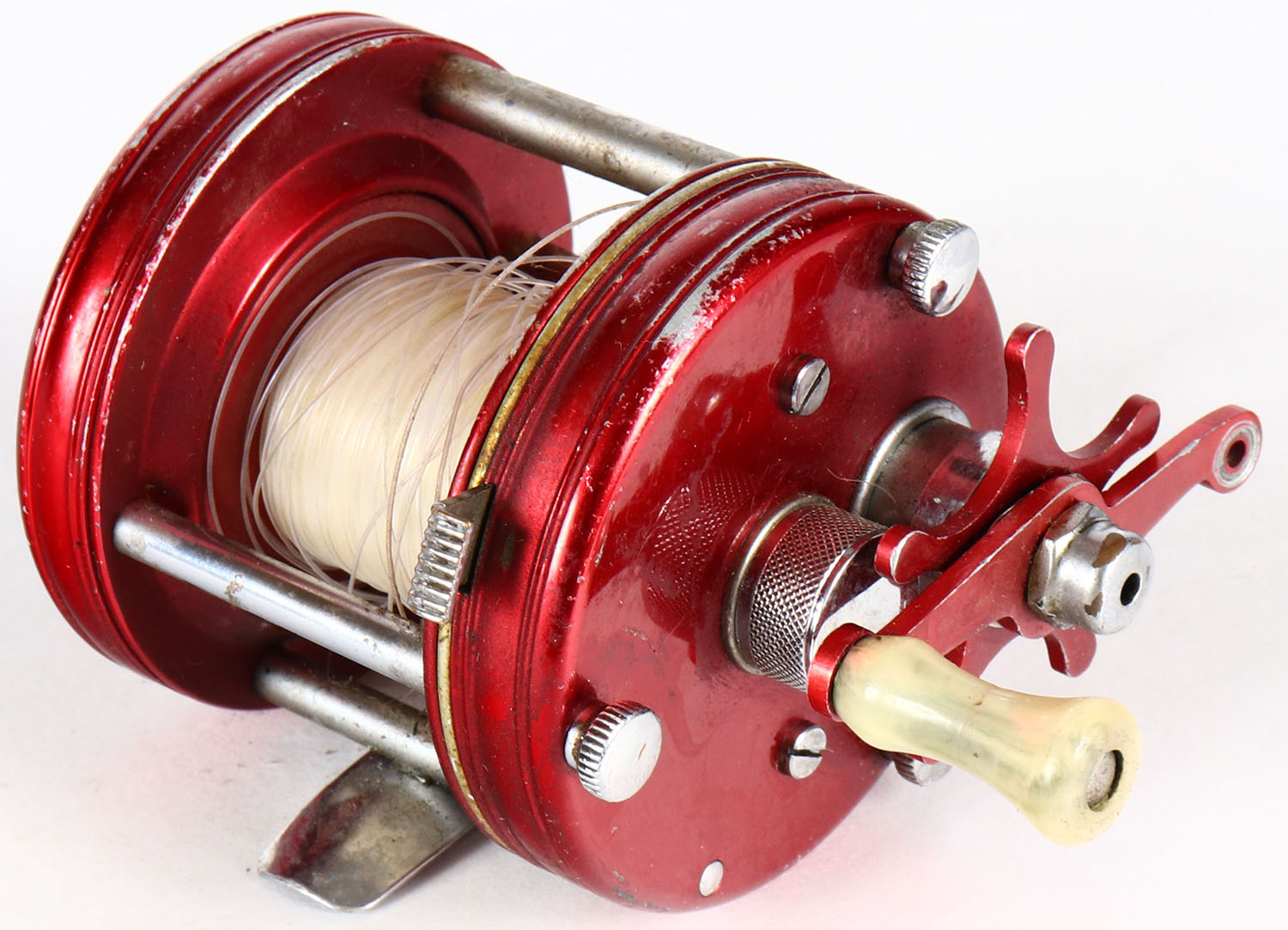 ABU Ambassadeur 5000 level wind reel, dual handle, ridge plates red, spins great & has strong click. Grade: Excellent - Value: 30 to 100