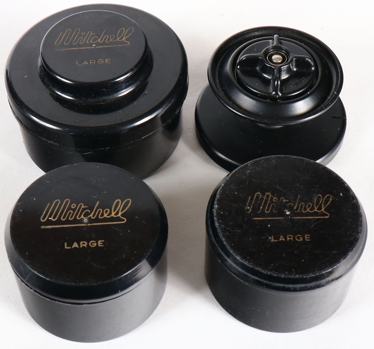 | Lot of 4 Mitchell spools, 3 are in original cases. Grade: Excel...
