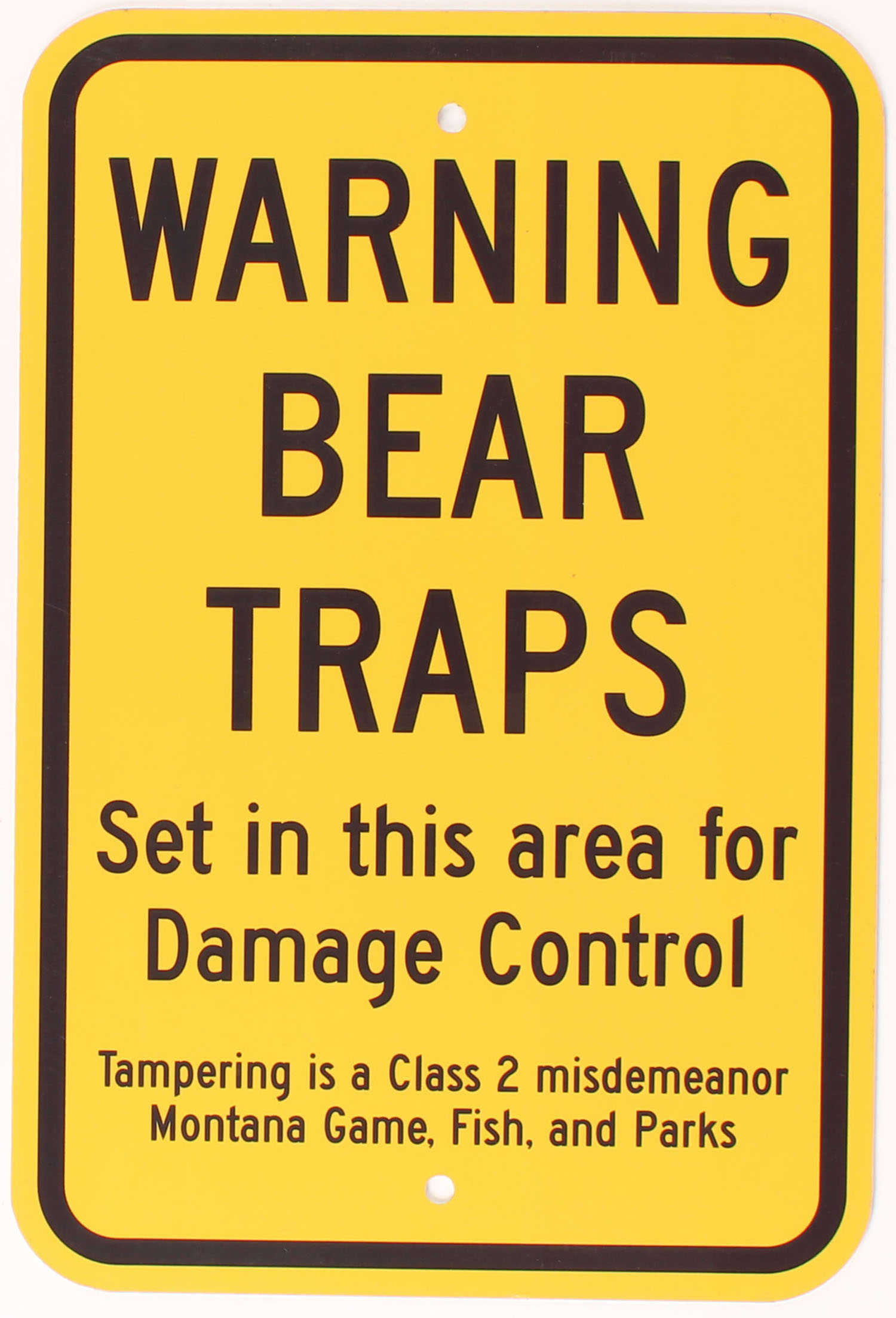 Warning BEAR TRAPS heavy metal sign, 12'' x 18''. Grade: MINT - Value: 30 to 150