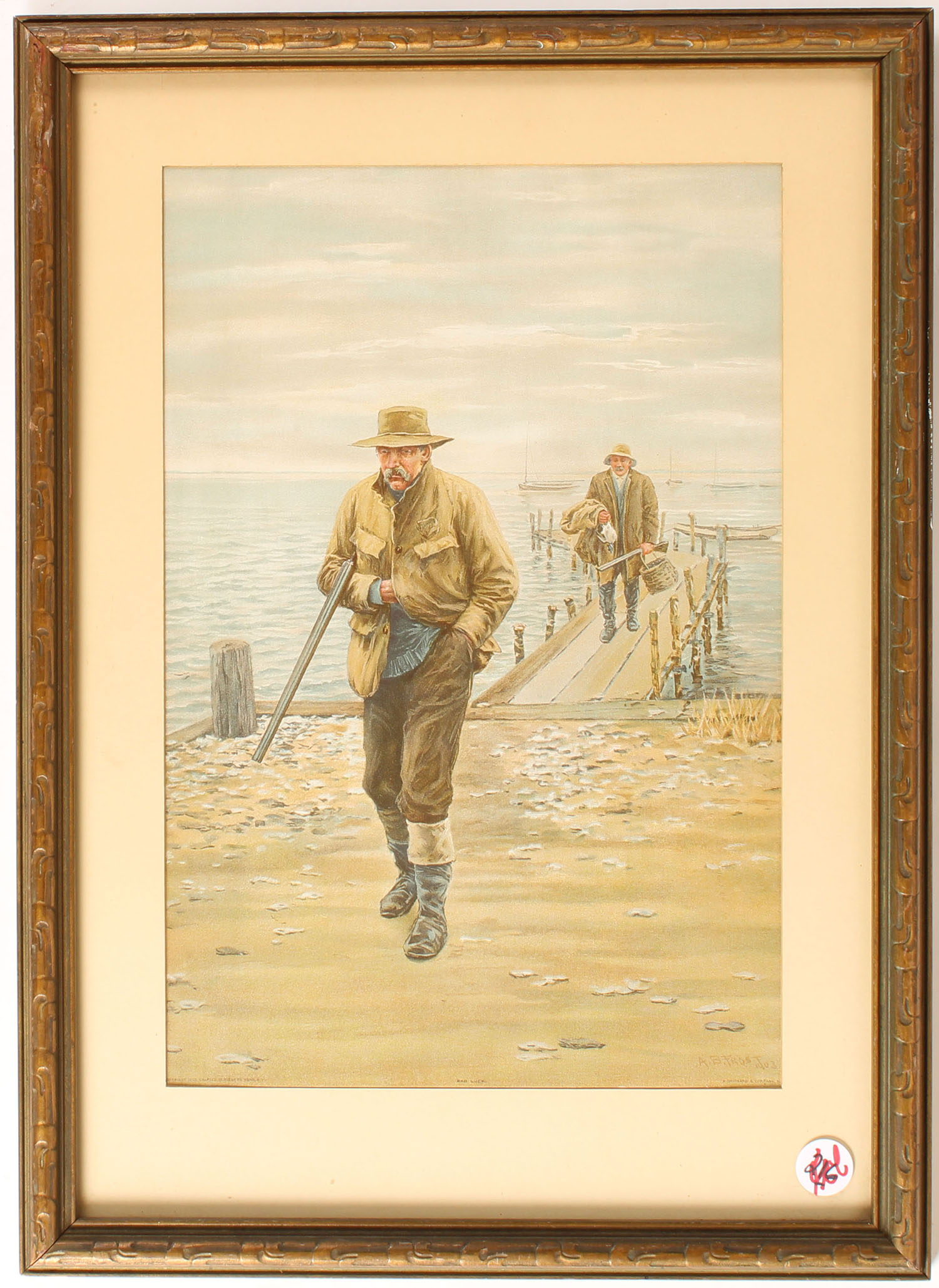 1903 sporting watercolor by American artist Arthur Burdett Frost (1851-1928). Frost was born in Philadelphia and is considered one of Americas best sporting artists and illustrators. This print marked ''Copyright 1903 Charles Scribners Sons NY'' (publisher), titled Bad Luck, image size 10 1/2'' X 16'', framed. Grade: Excellent - Value: 50 to 200