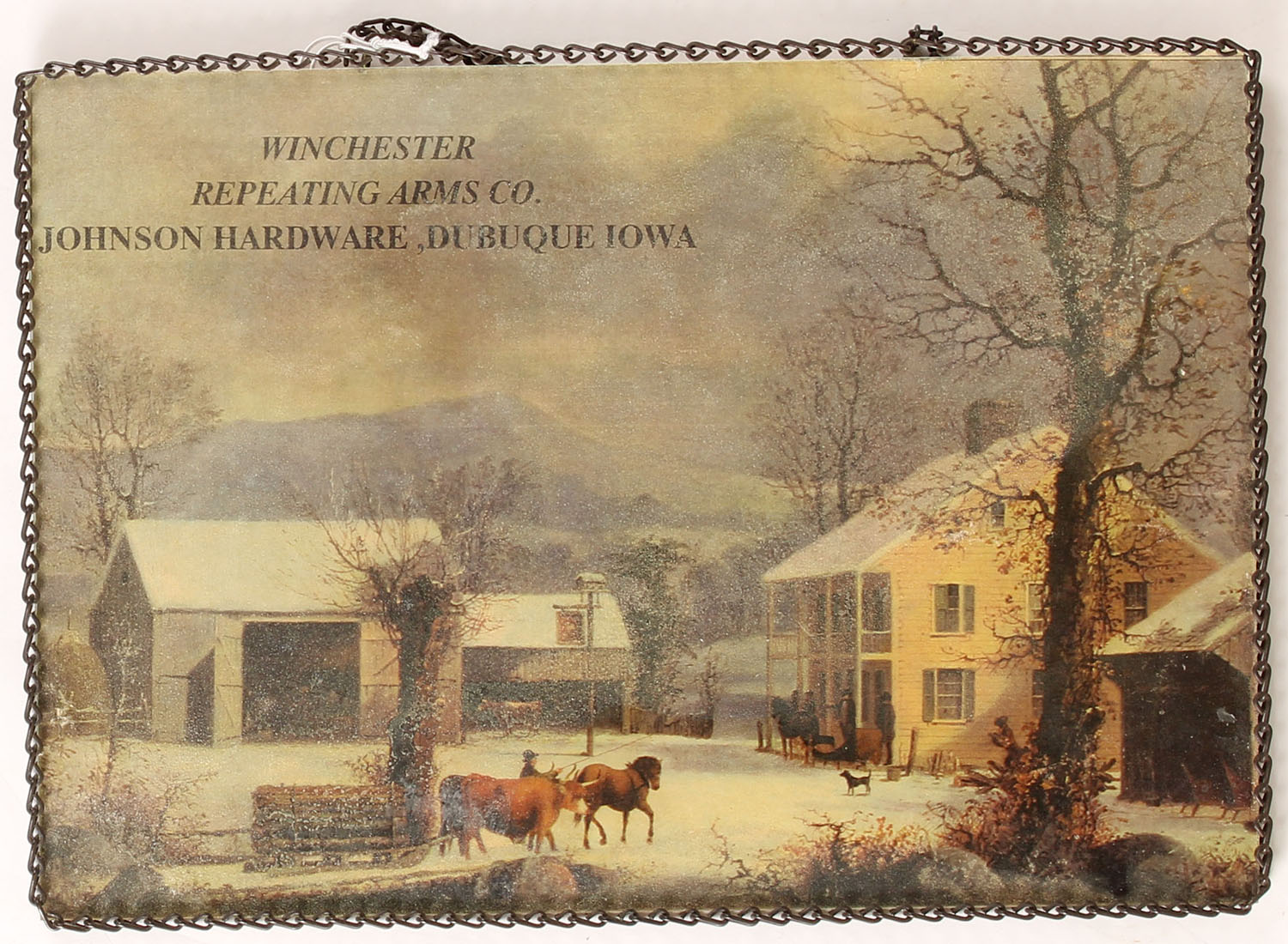 Winchester Chain Art, pictures snow covered farm house, 11 1/2'' x 8'', not produced by Winchester. Grade: Excellent - Value: 50 to 150