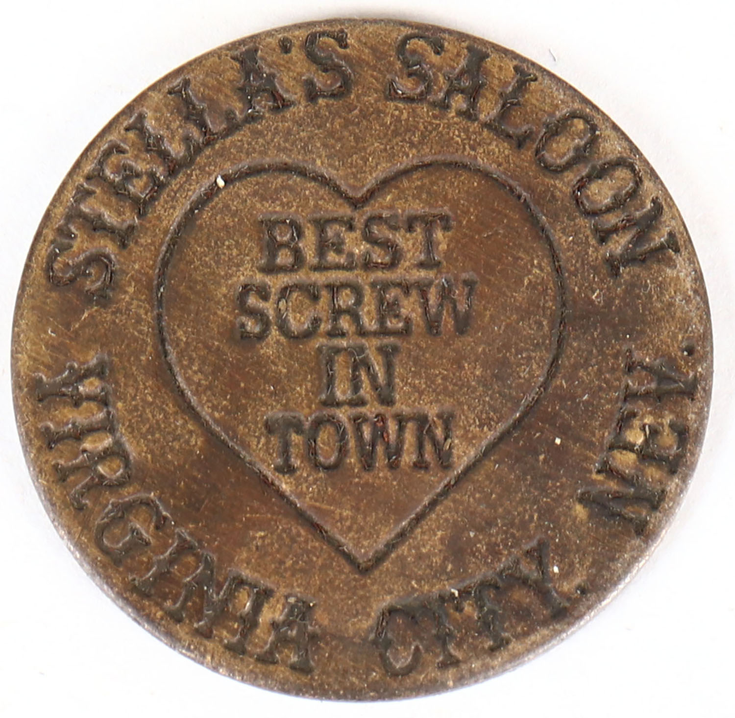 Double sided Brothel Token. ''Stellas Saloon''. Grade: Excellent - Value: 10 to 40